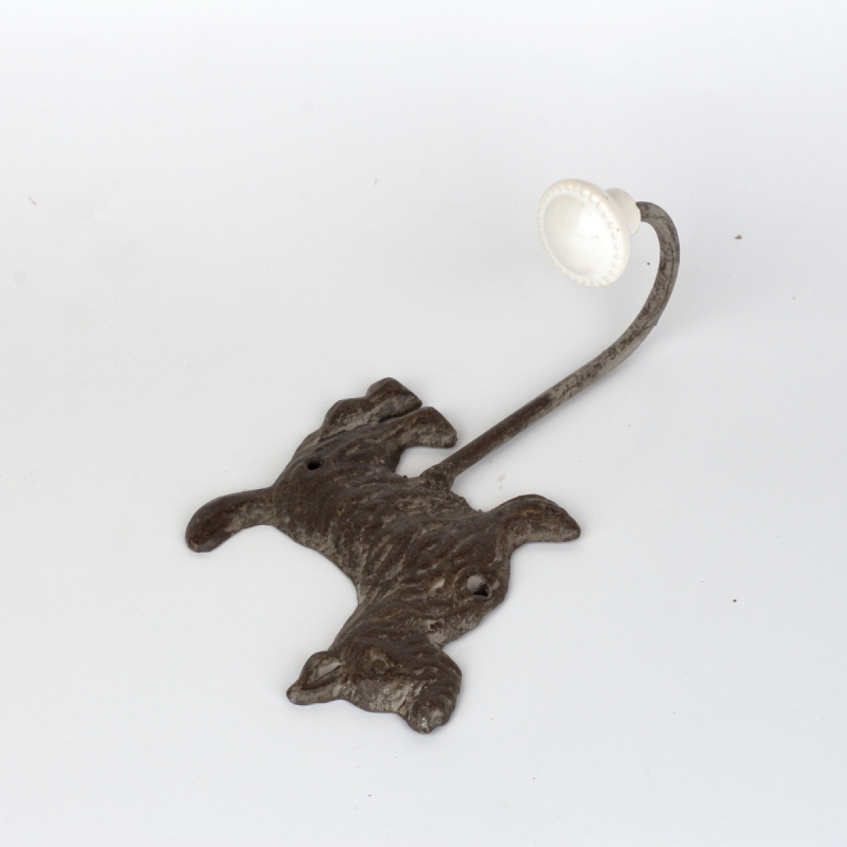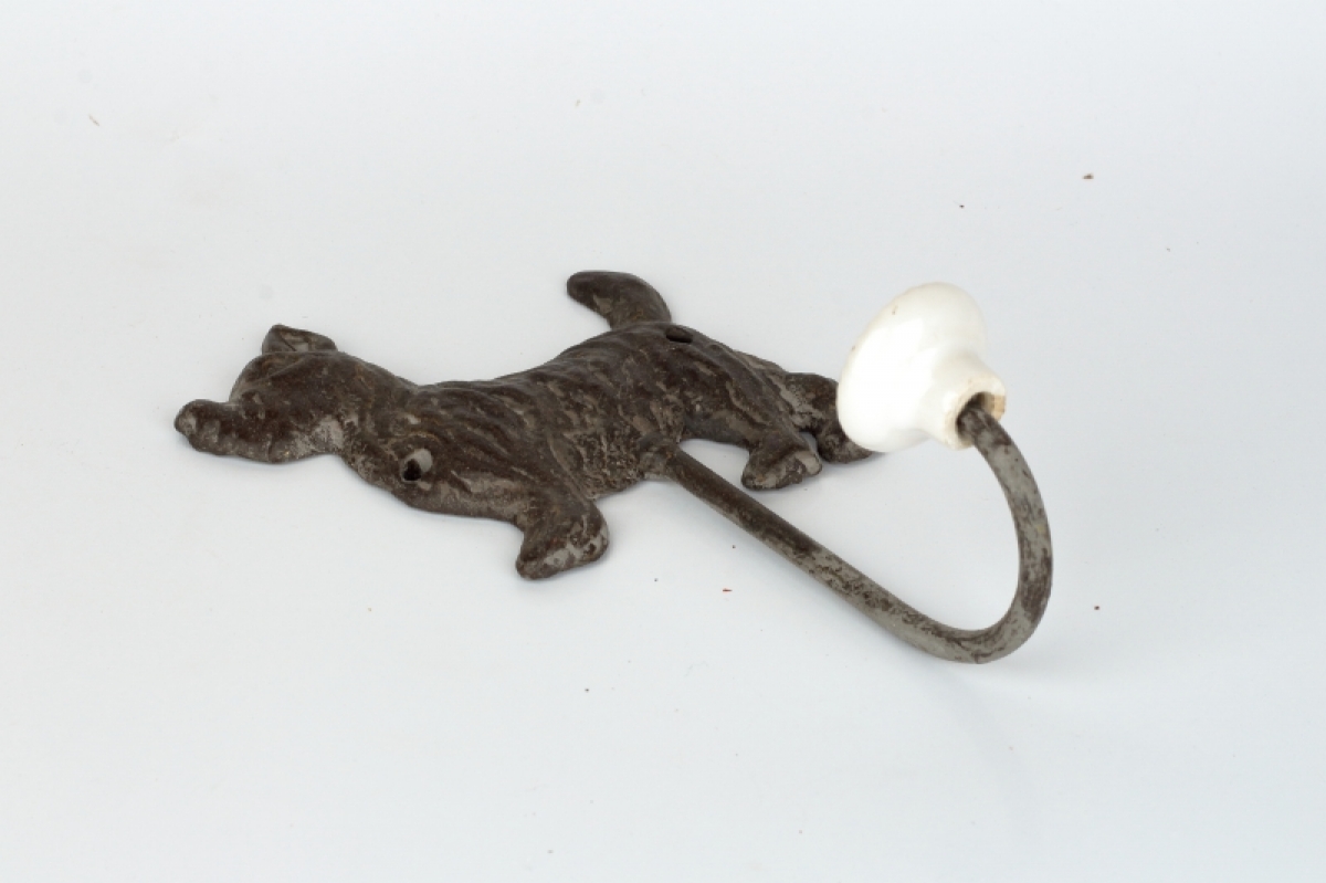 Vešiak na dvere s vyobrazením psa, môže posloižit pre zavesenie vodítka na psa, alebo vďaka keramickej guličke na konci vešiaku môžete zavětit aj sveter, bez toho aby ste poškodili štruktúru látky (úpletu)