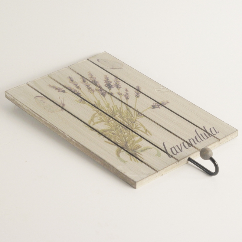 Vešiak na kľúče Levanduľa s kovovým háčikom predstavuje nápaditú kombináciu obrázku a praktického vešiaka.
