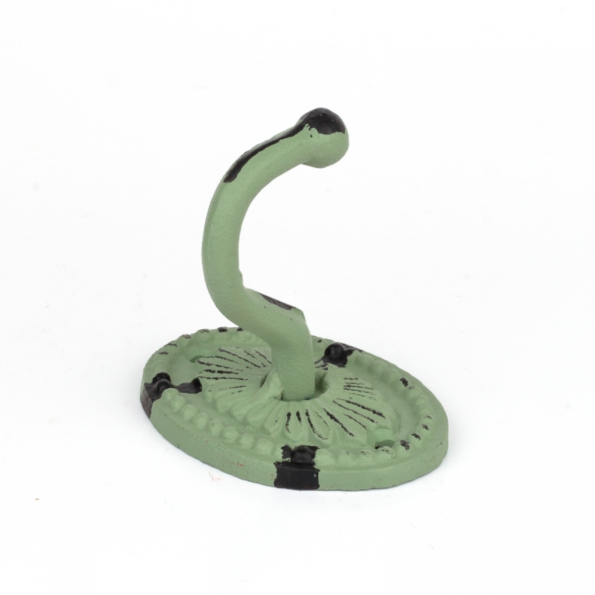 Rozmery: liatinová podesta v tvare oválu 8,5x6cm, výška háčika 8cm