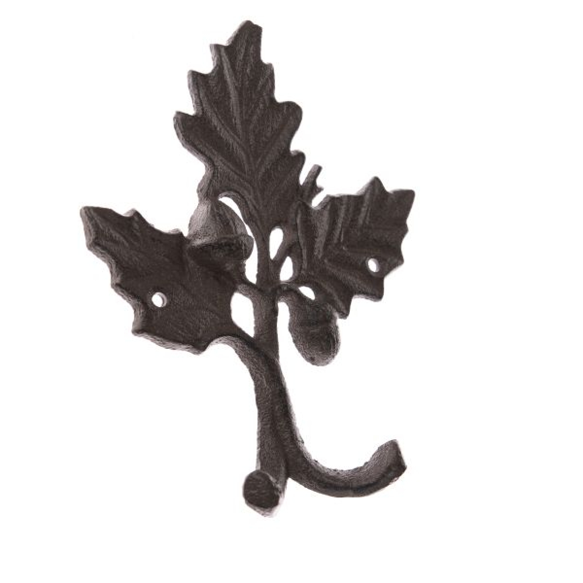Tento nápaditý vešiak na oblečenie je vyrobený tradičnou technikou z liatiny, ktorá umožňuje vytvoriť aj jemné detaily listov a žaluďov. Zároveň ide o veľmi odolný a pevný materiál. Dva otvory v bočných listoch slúžia na jednoduché upevnenie na miesto určenia.