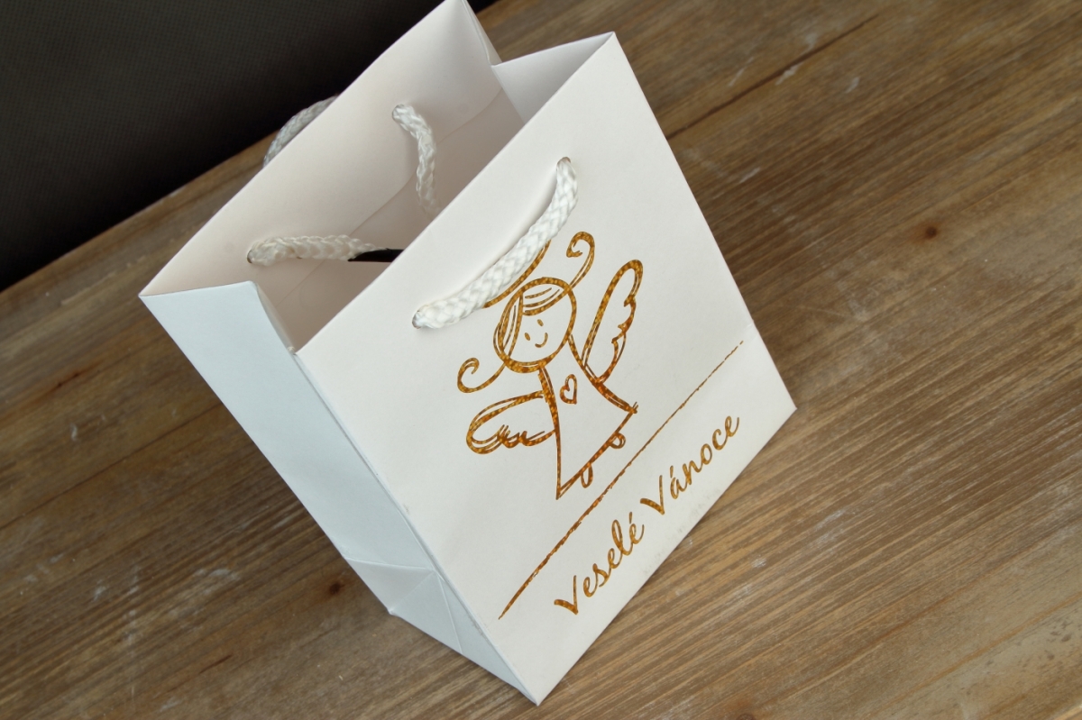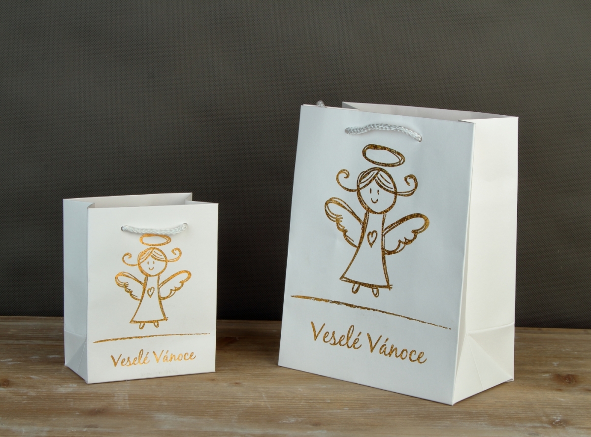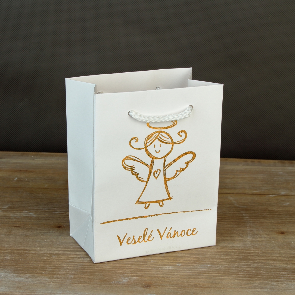 Vianočná darčeková taška s anjelom a nápisom Veselé Vianoce - malá