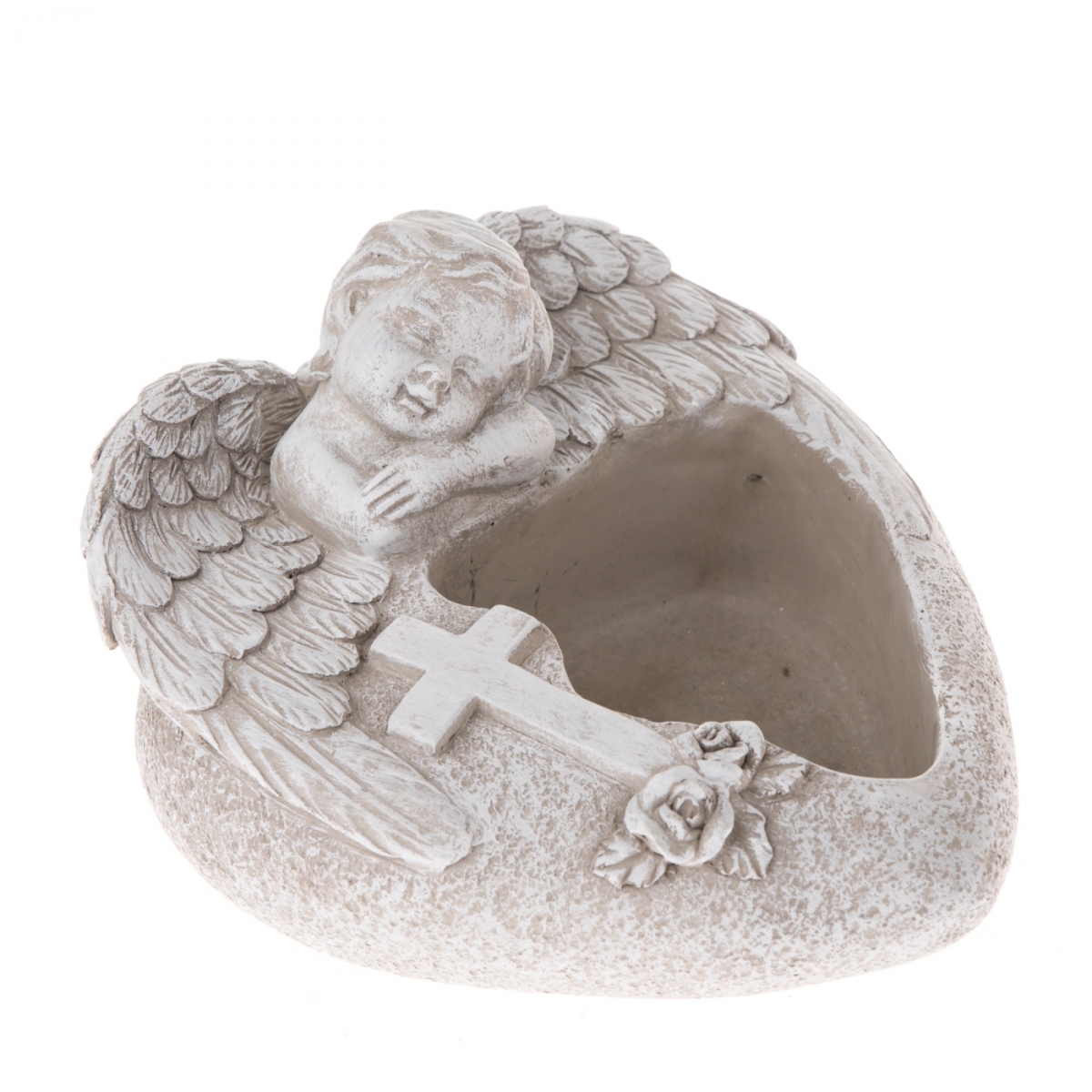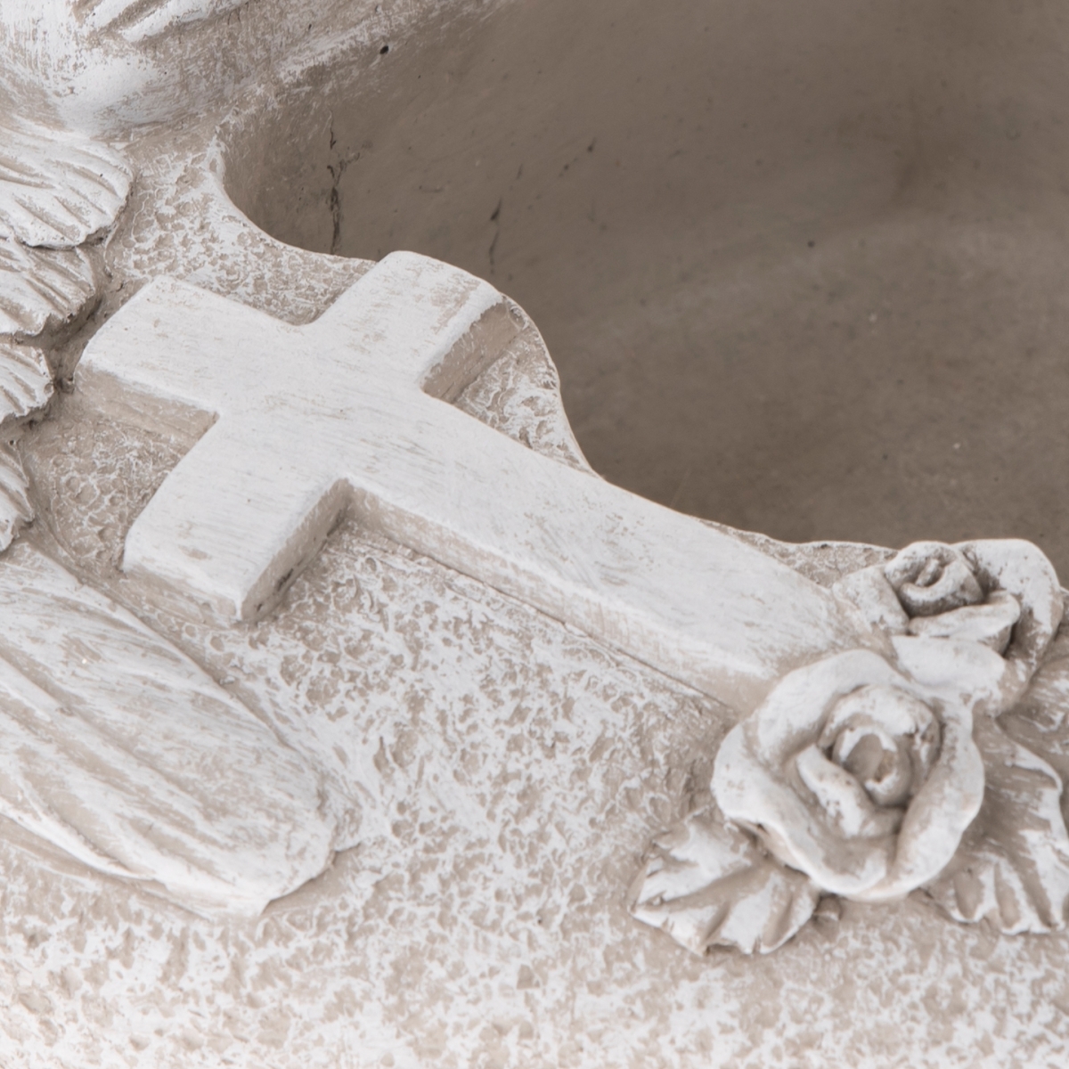Vianočné dekorácie na hrob v podobe betónového kvetináča s anjelom, stačí vysypať hlinou a zasadiť do neho rôzne druhy sukulentov, ktoré okrasne presypete okruhliakmi. Môžete ho použiť aj na dušičkový aranžmán, kedy vnútornú časť vyplníte aranžovacou hmotou, do ktorej podľa fantázie zapicháte čerstvé, sušené alebo umelé kvety.
