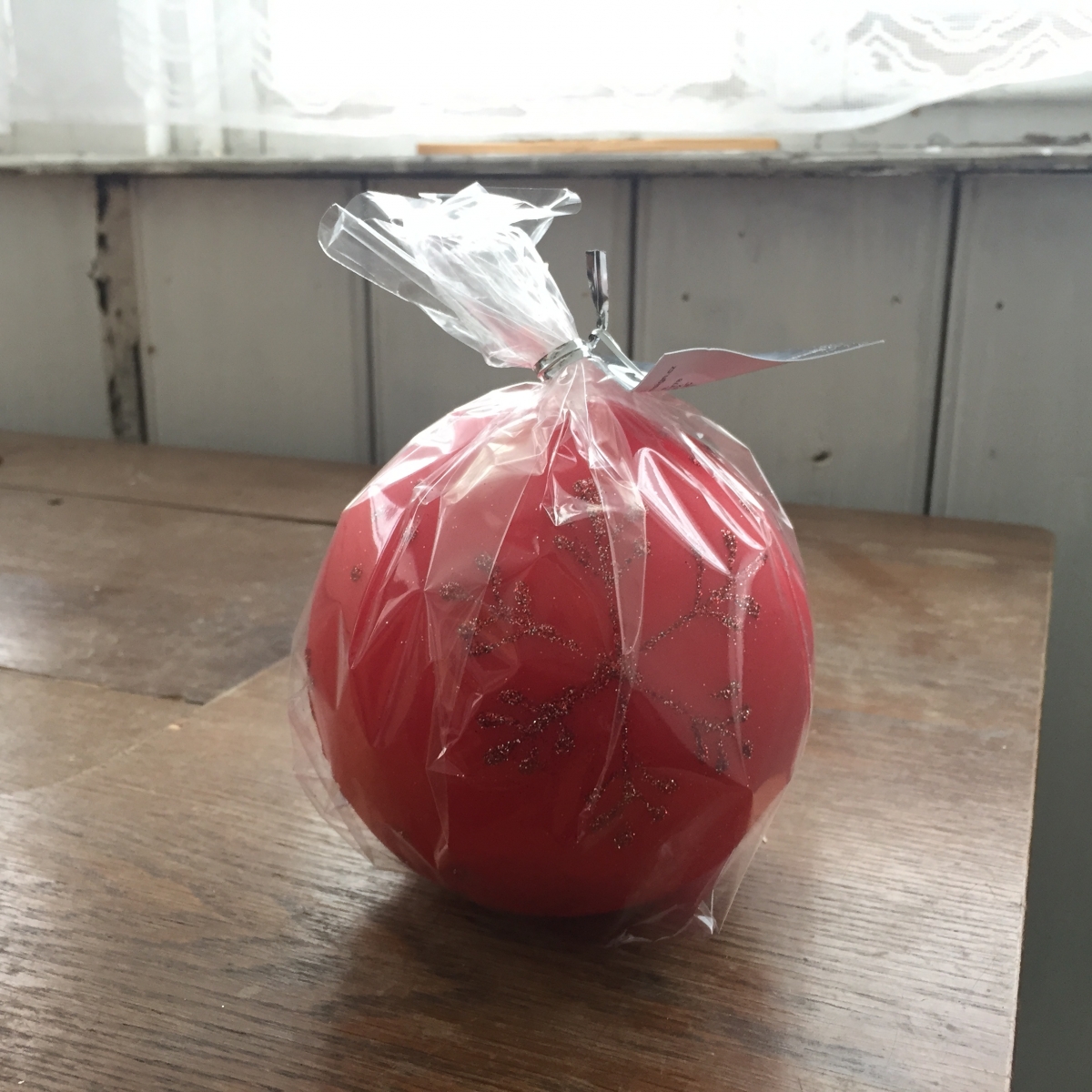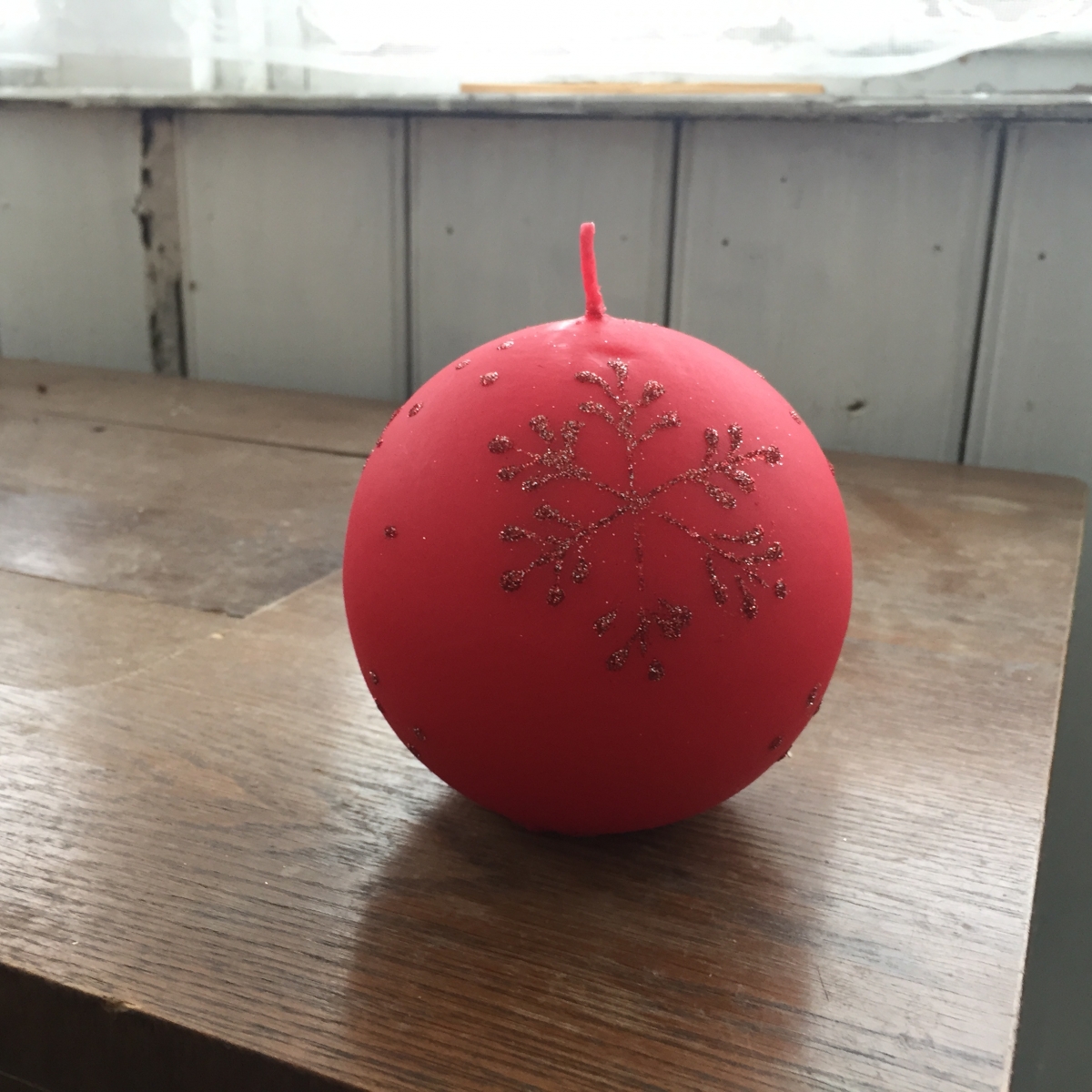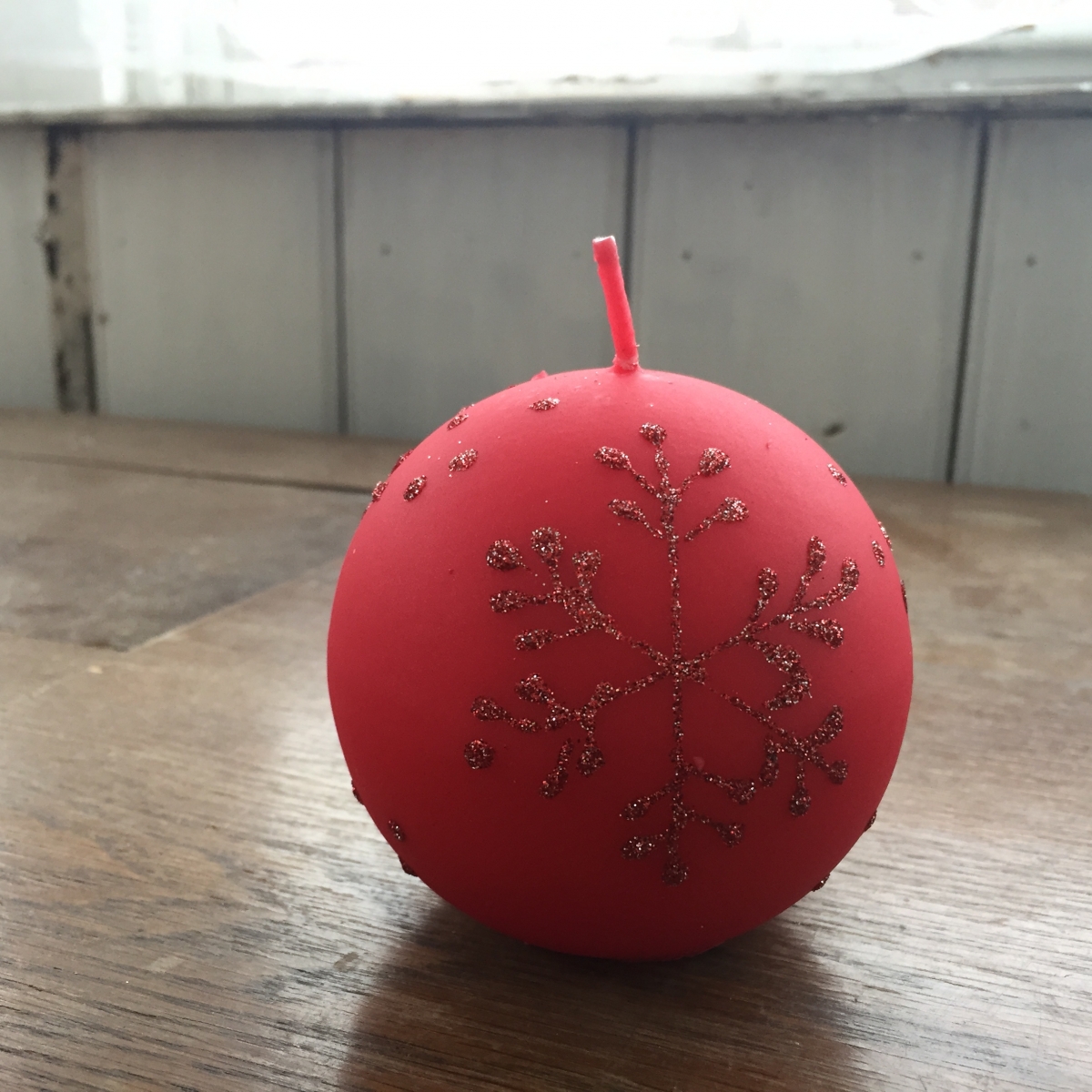 Vianočná sviečka snehová vločka guľa červená 10cm