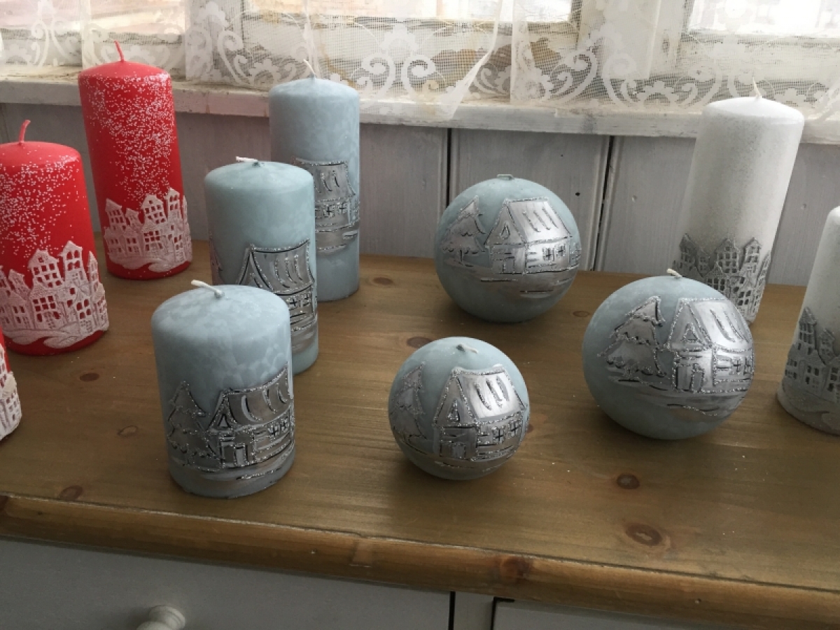 Vianočná sviečka zasnežená dedina guľa 10cm doladí adventný veniec k dokonalosti a bude Vás sprevádzať celými štyrmi týždňami.