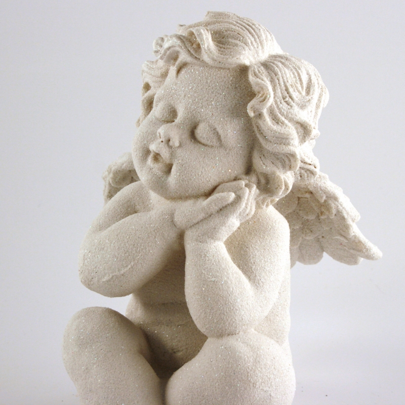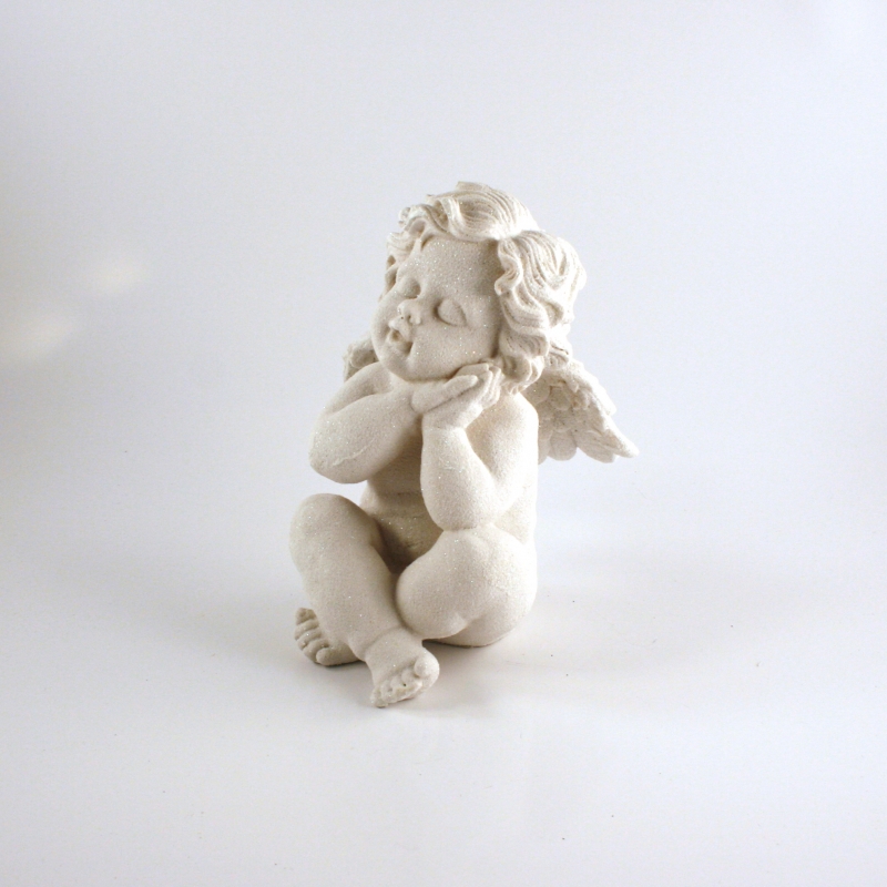 Vianočná dekorácie Anjel sediaci sníva určite krásny sen , aspoň to tak podľa jeho blaženého výrazu vyzerá . Anjel je biely , tak ako má správny anjel byť . Je vysoký asi 23 cm a je posiaty trblietkami .