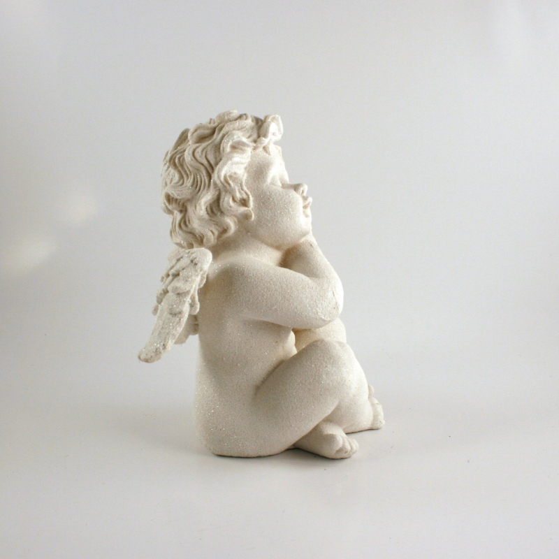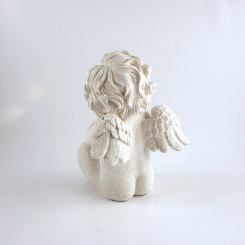 Vianočné dekorácie Anjel sediaci biely 22,5 cm