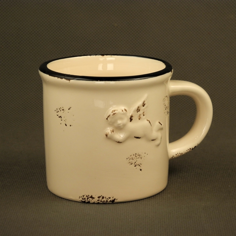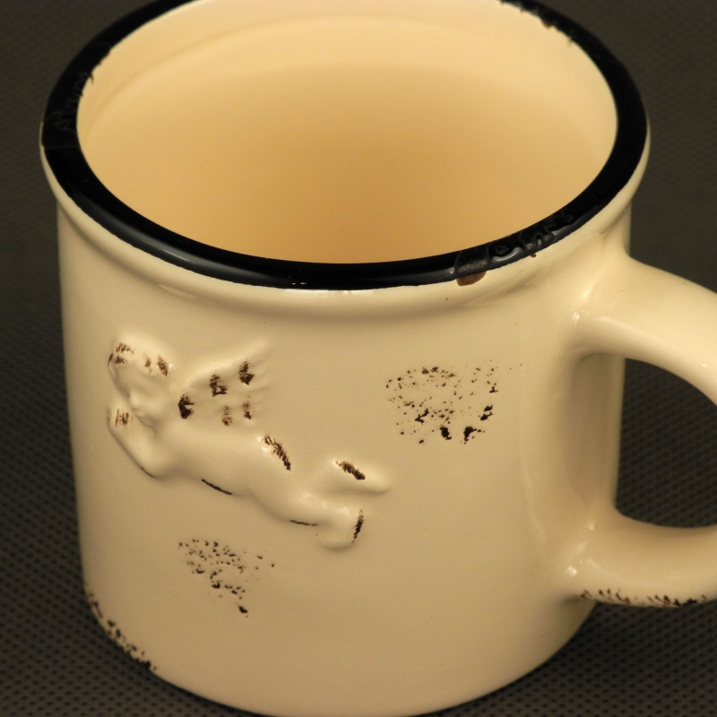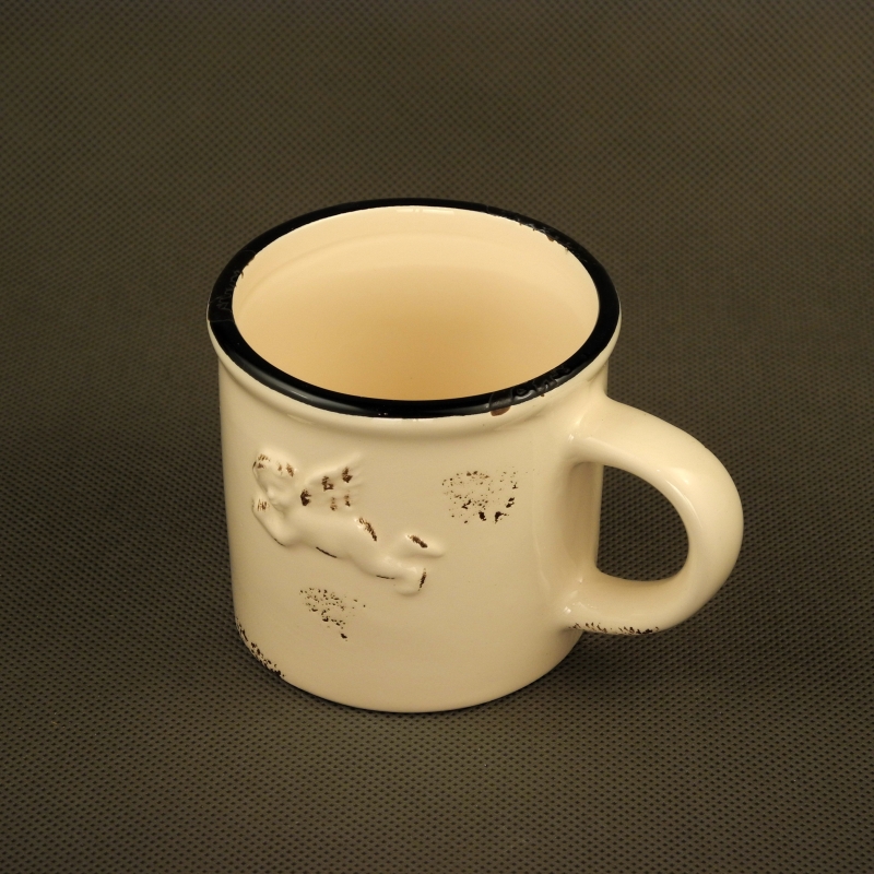 Keramický hrnček je vhodný na denné použitie ako malý retro hrnček na kávu, alebo na kakao na raňajky.