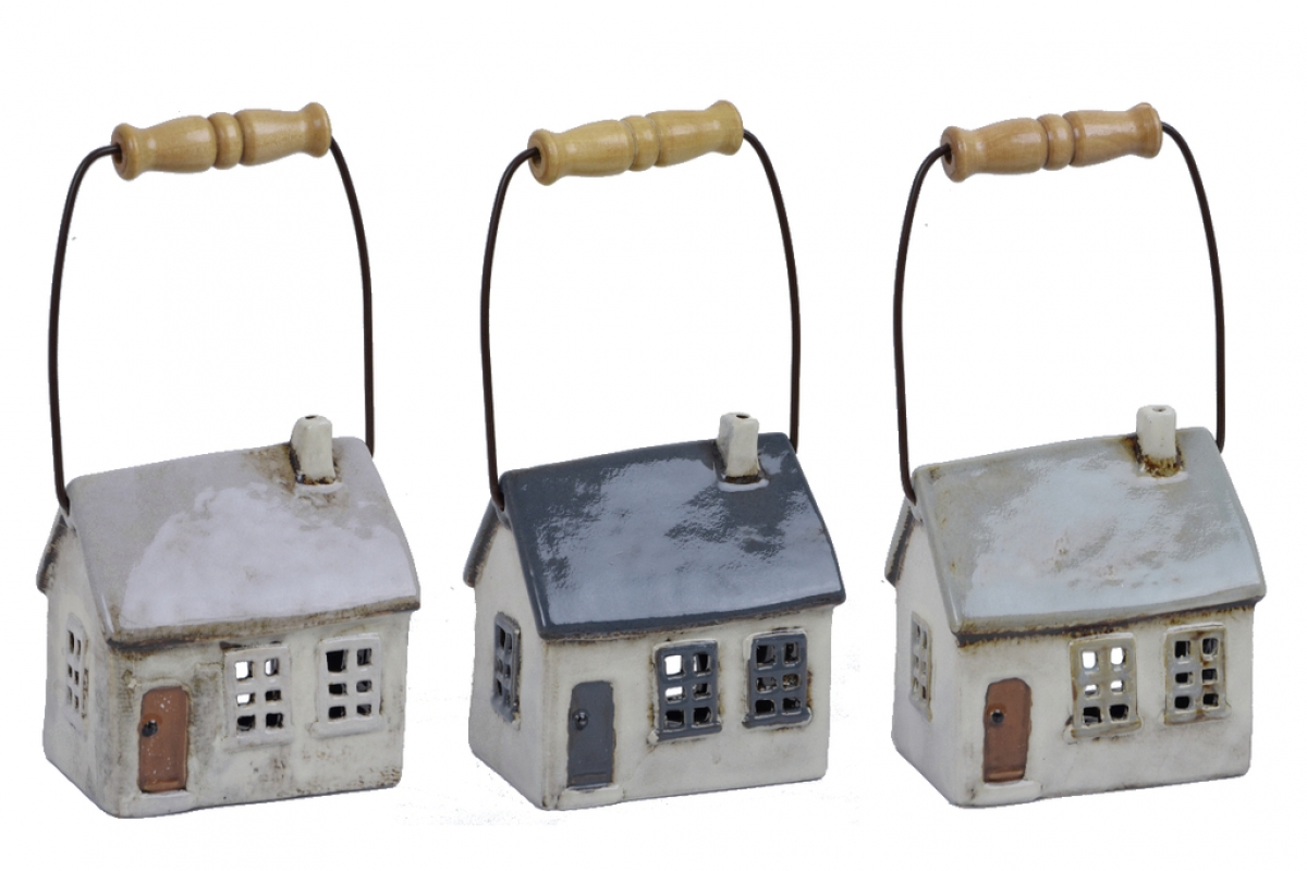 Vianočné dekorácie stvárňujúca domček. Ručne vyrobené z keramiky s povrchovou glazúrou.
