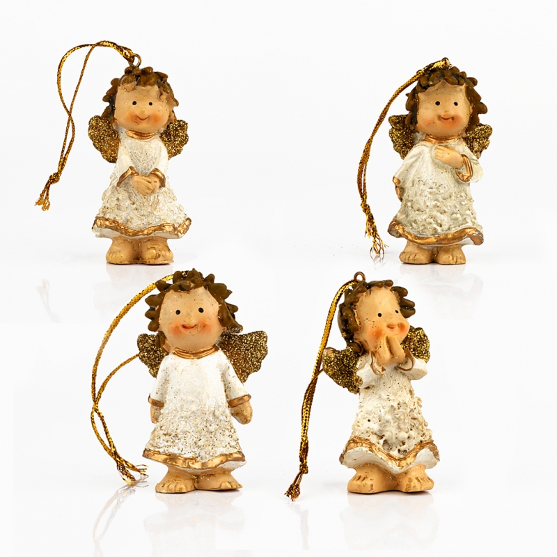 Vánoční postavičky andílci 4ks o výšce 6cm jsou určené k vánoční dekoraci postavením na podložku, nebo i zavěšením na stromeček. Balení obsahuje 4 postavičky.