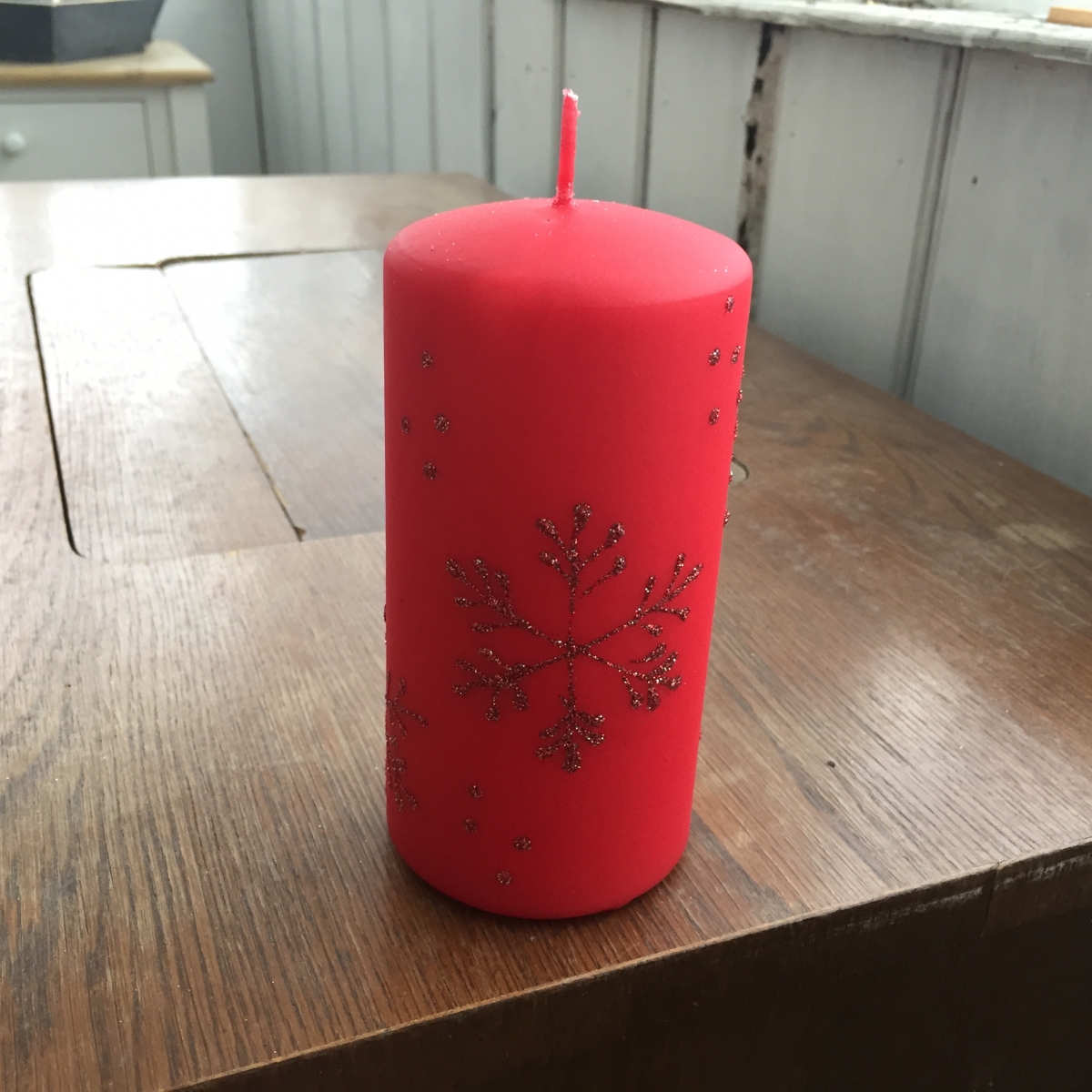 Vianočné sviečky snehová vločka valec červený 7x14cm