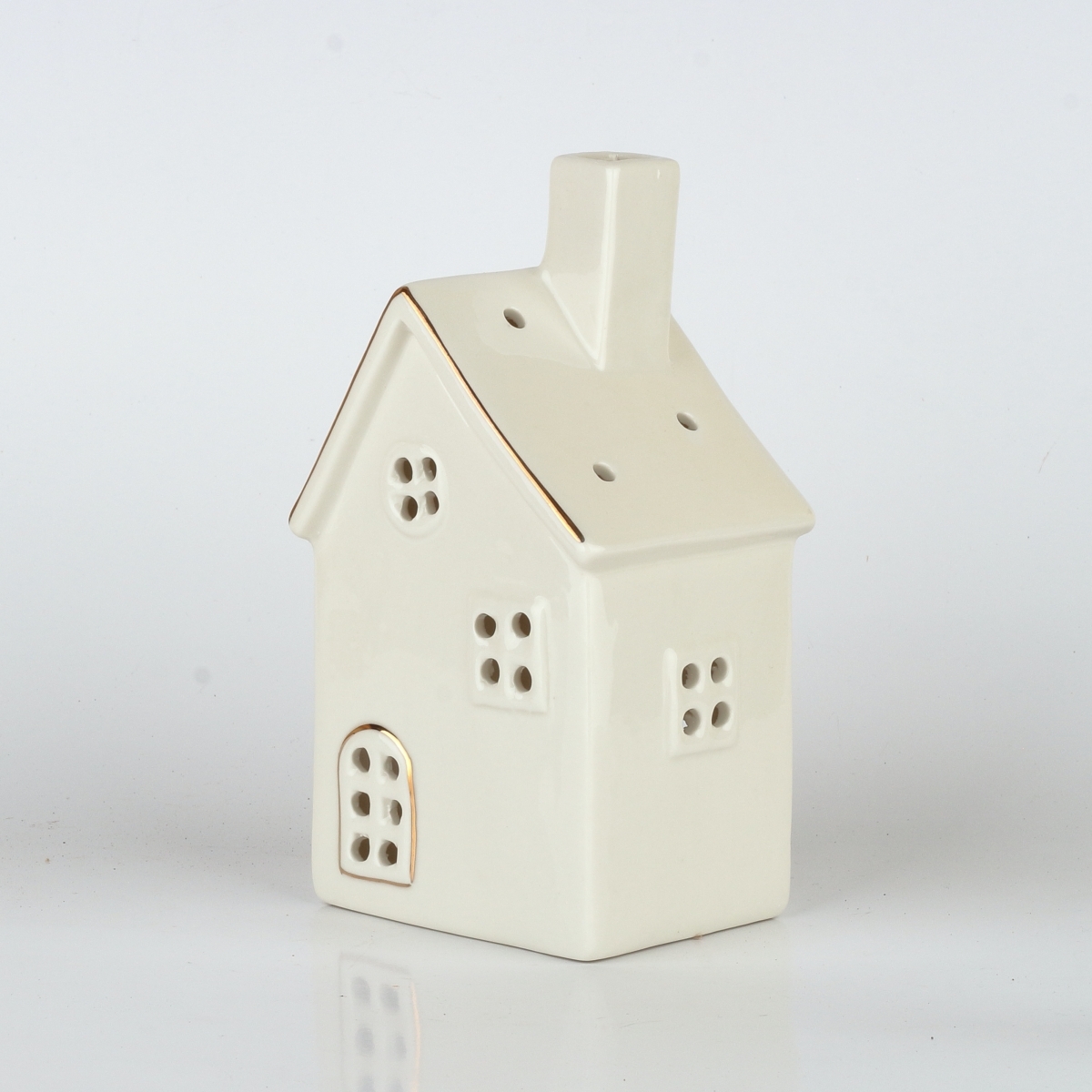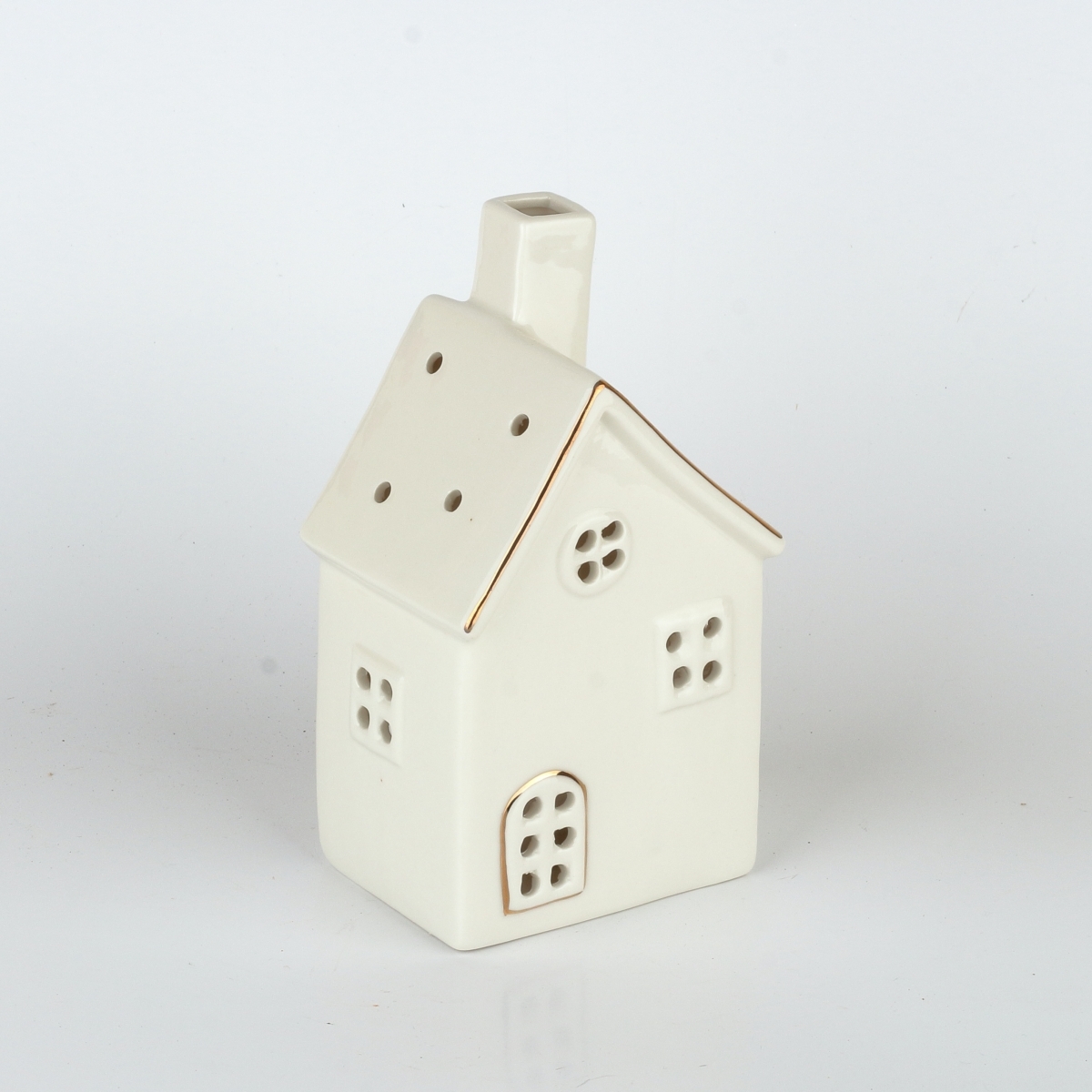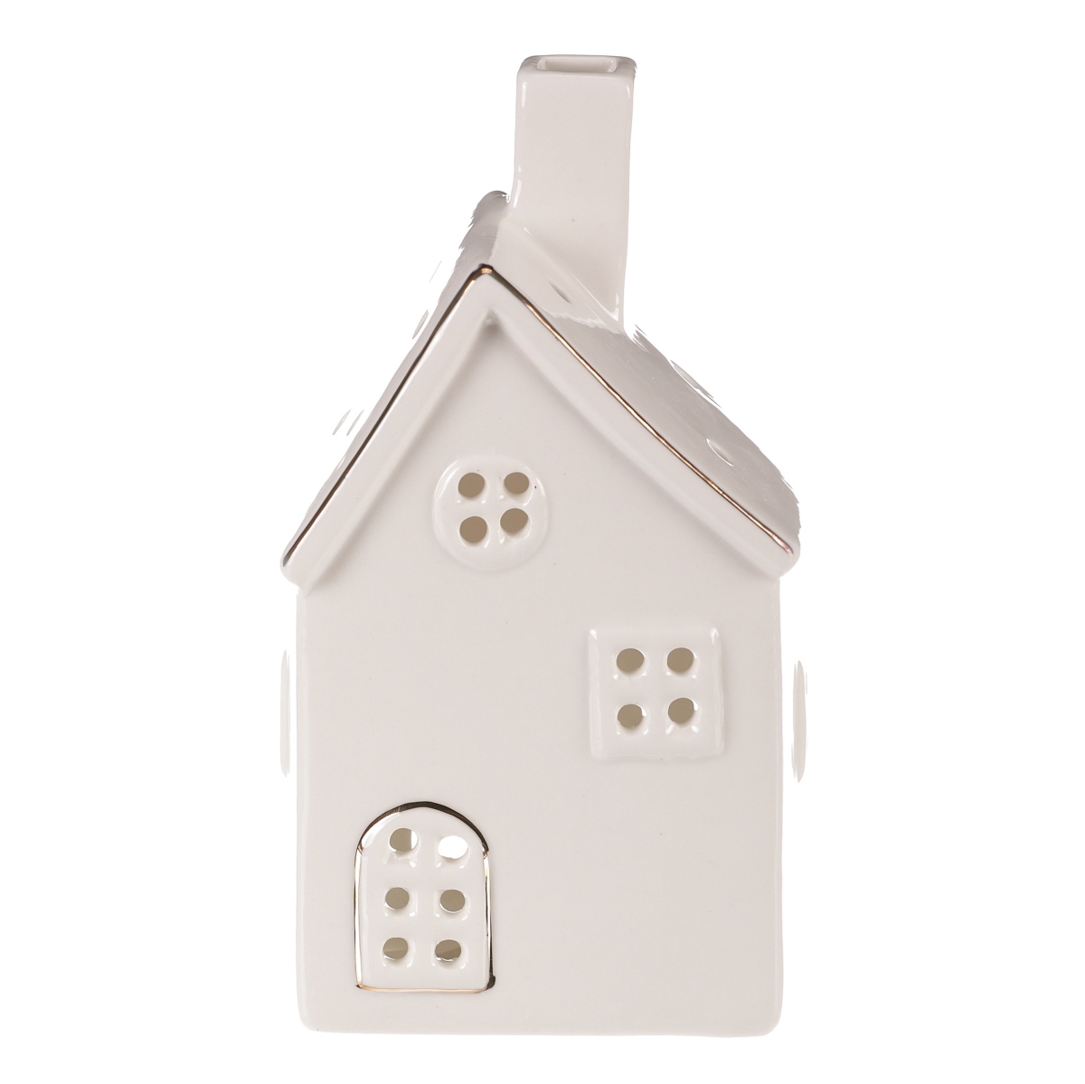 Pevný, stabilný porcelánový domček s komínčekom a otvormi v streche, na odvádzanie tepla z čajovej sviečky, je krásnym nadčasovým vianočným doplnkom.