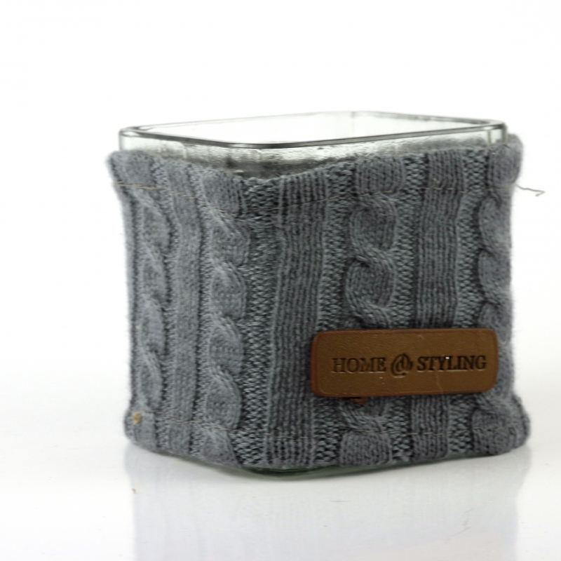 Kalíšek na svíčku hranatý sklo + vlna šedý.