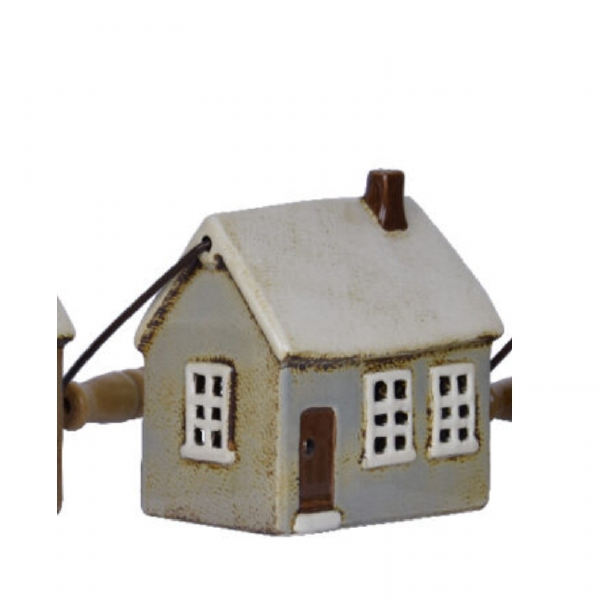 Vianočný lampáš v podobe keramického domčeku v šedej farbe