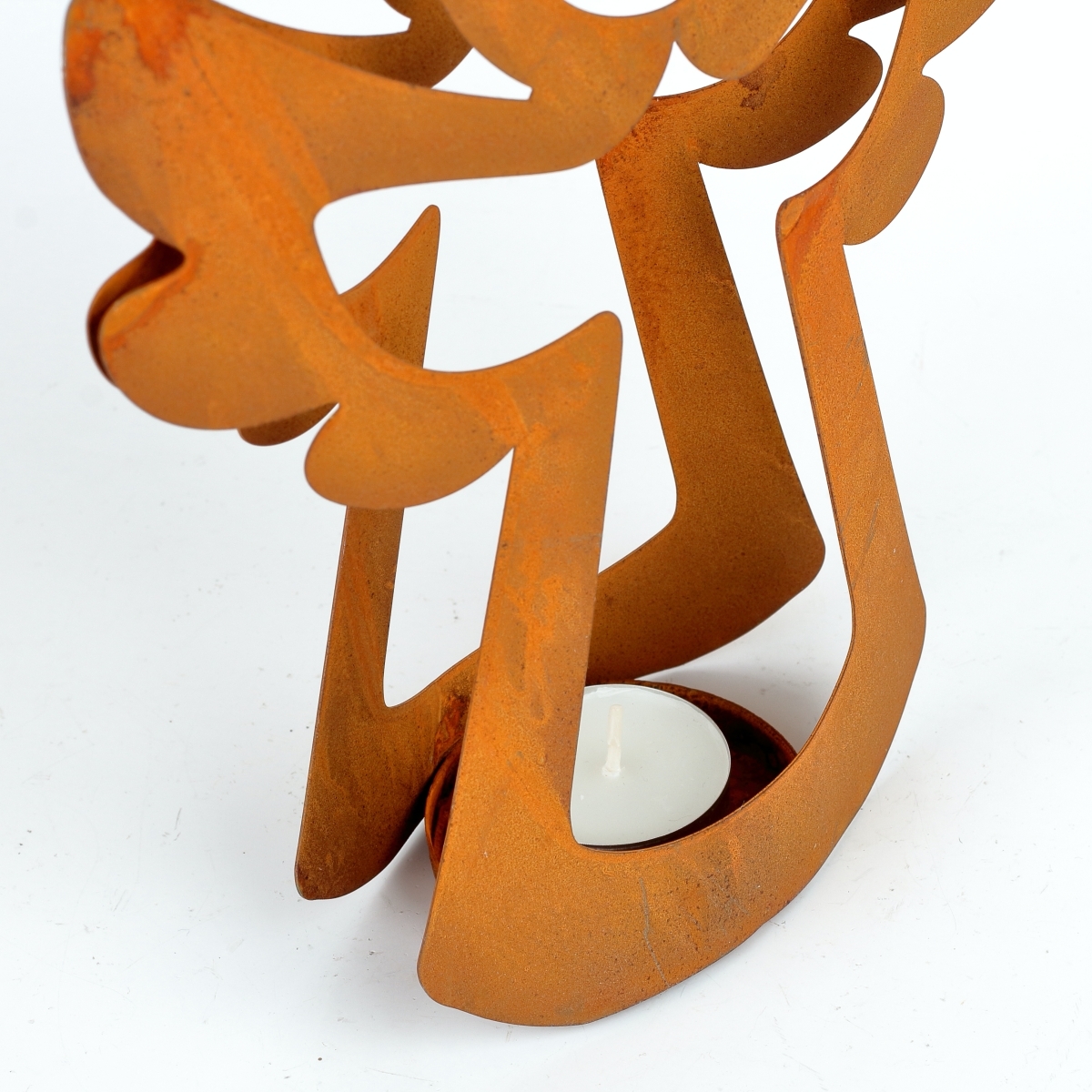 Vianočný svietnik v kovovom prevedení má v spodnej časti kovovú misku s okrajom, na umiestnenie čajovej sviečky. Čajová svíčka tak nepríde do styku priamo s podložkou, na ktorej je umiestnená.