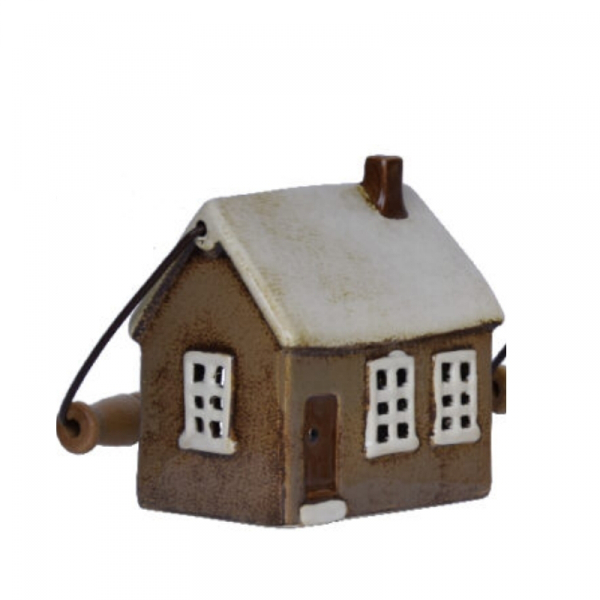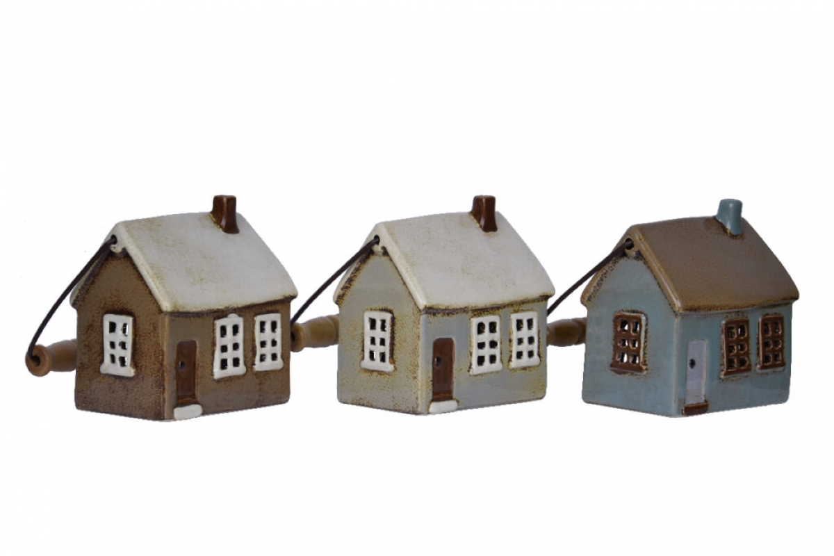 Vianočný svietnik do okna v podobe keramického domčeku s rukoväťou