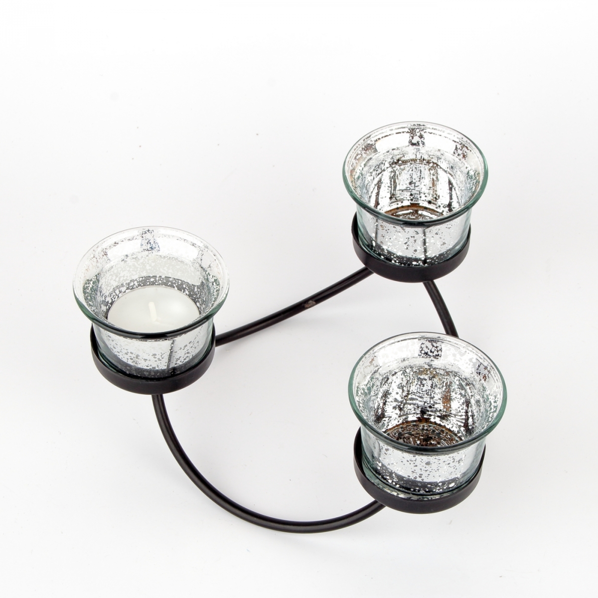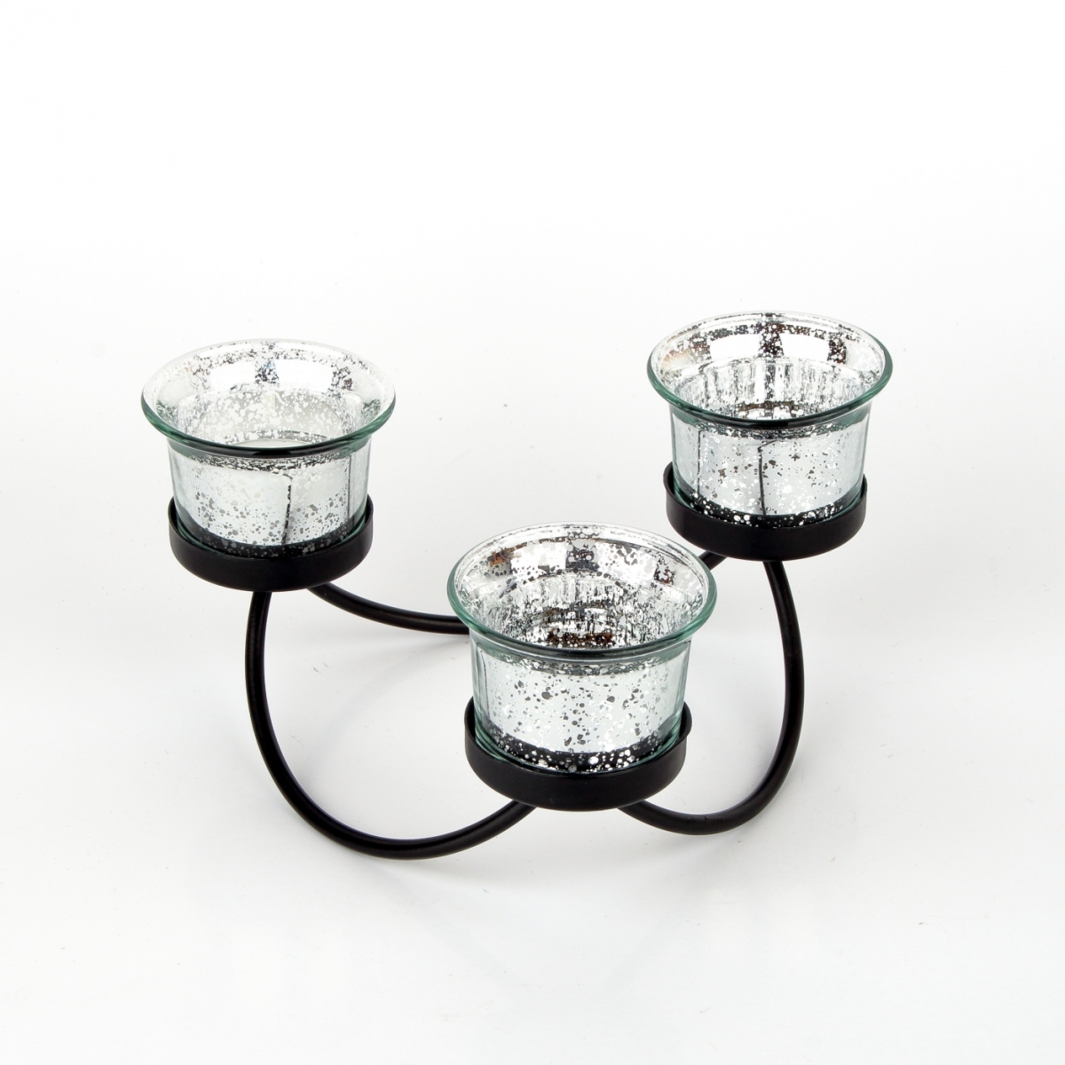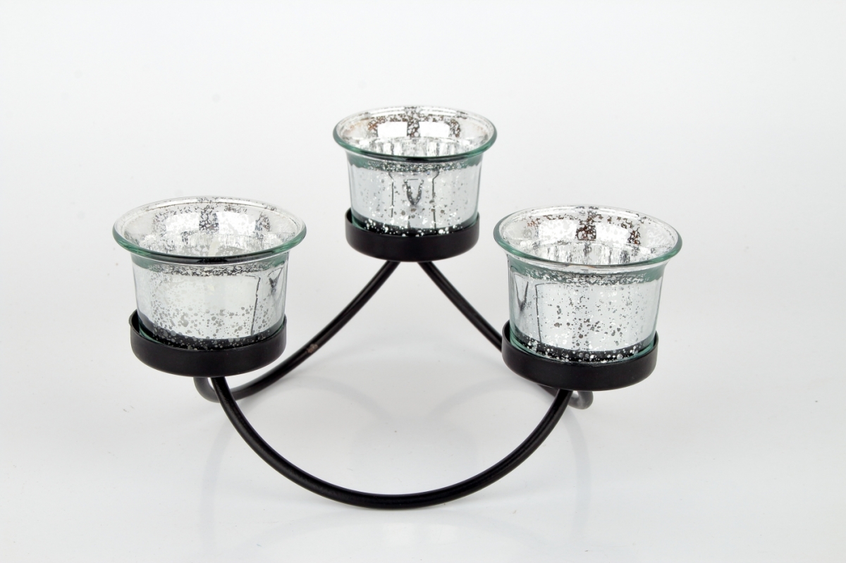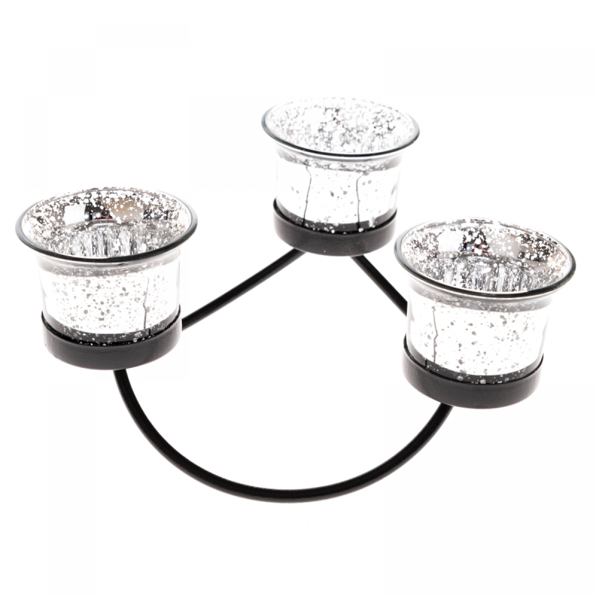 Krásny vianočný svietnik v čiernej farbe má mištičky na 3 sviečky. Bude sa skvele vynímať na vianočnom stole alebo na parapetom okna a určite si ním môžete spríjemňovať večery aj mimo vianočný čas.