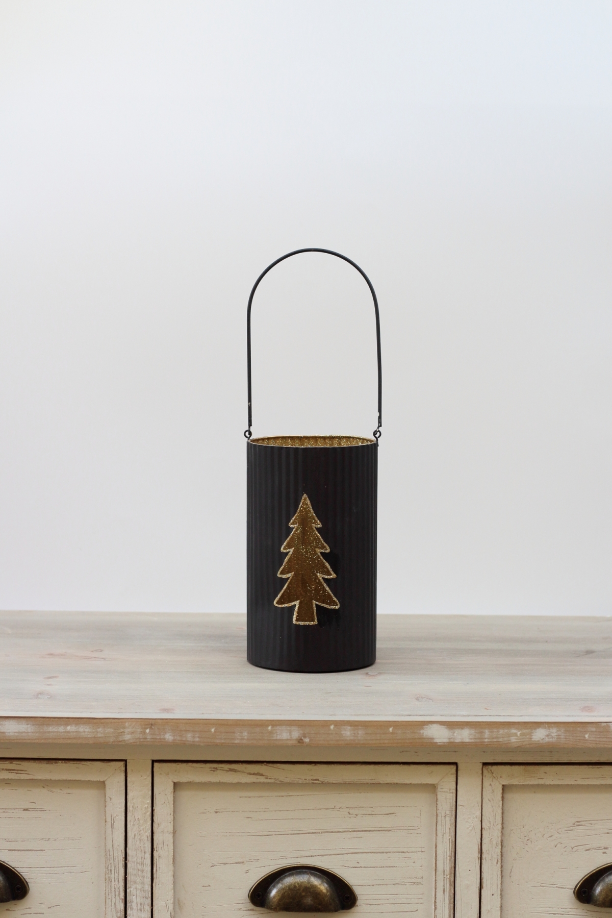Vianočný svietnik so stromčekom 19cm, čierno-zlatý