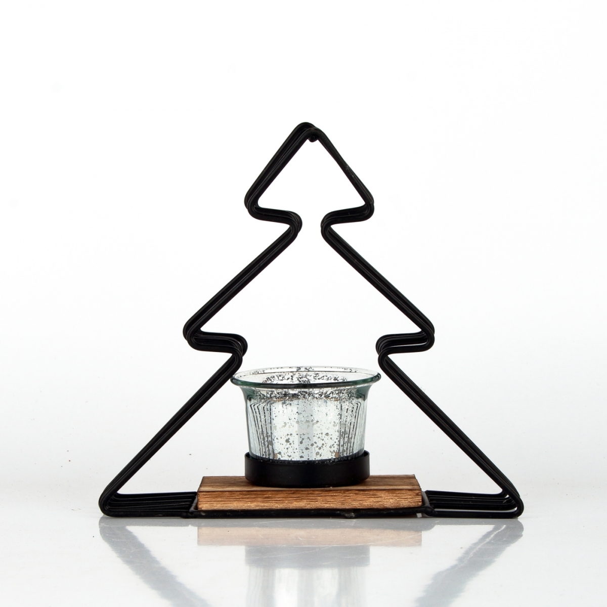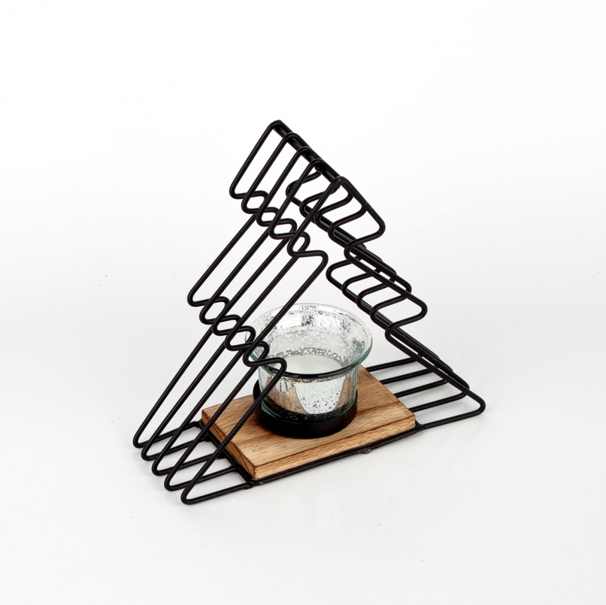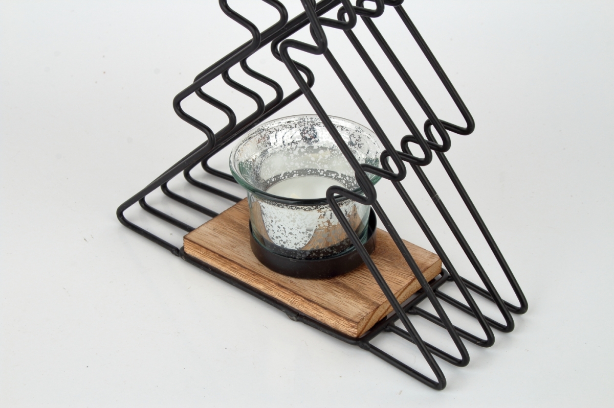 Vianočný svietnik z kovu a dreva v tvare stromčeka