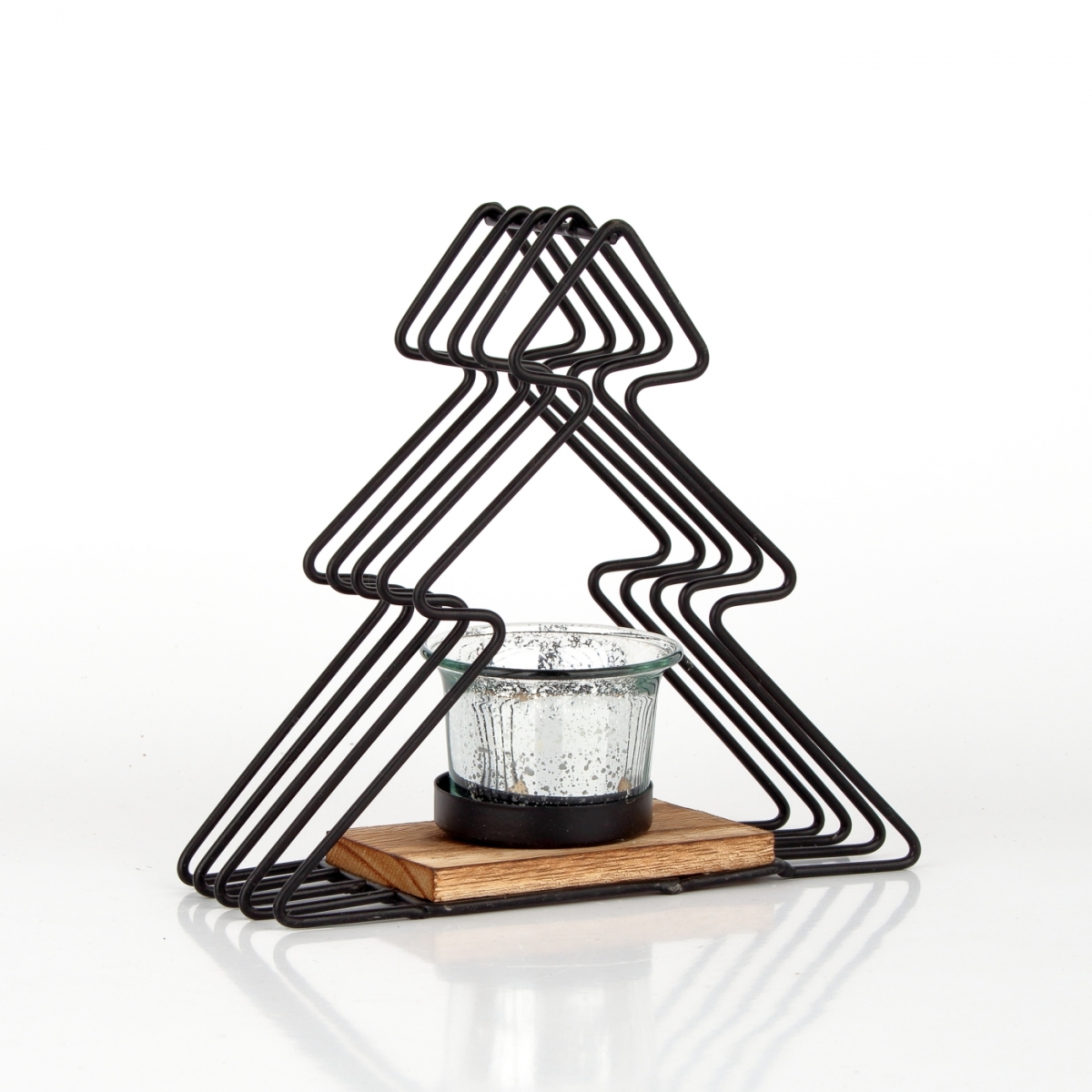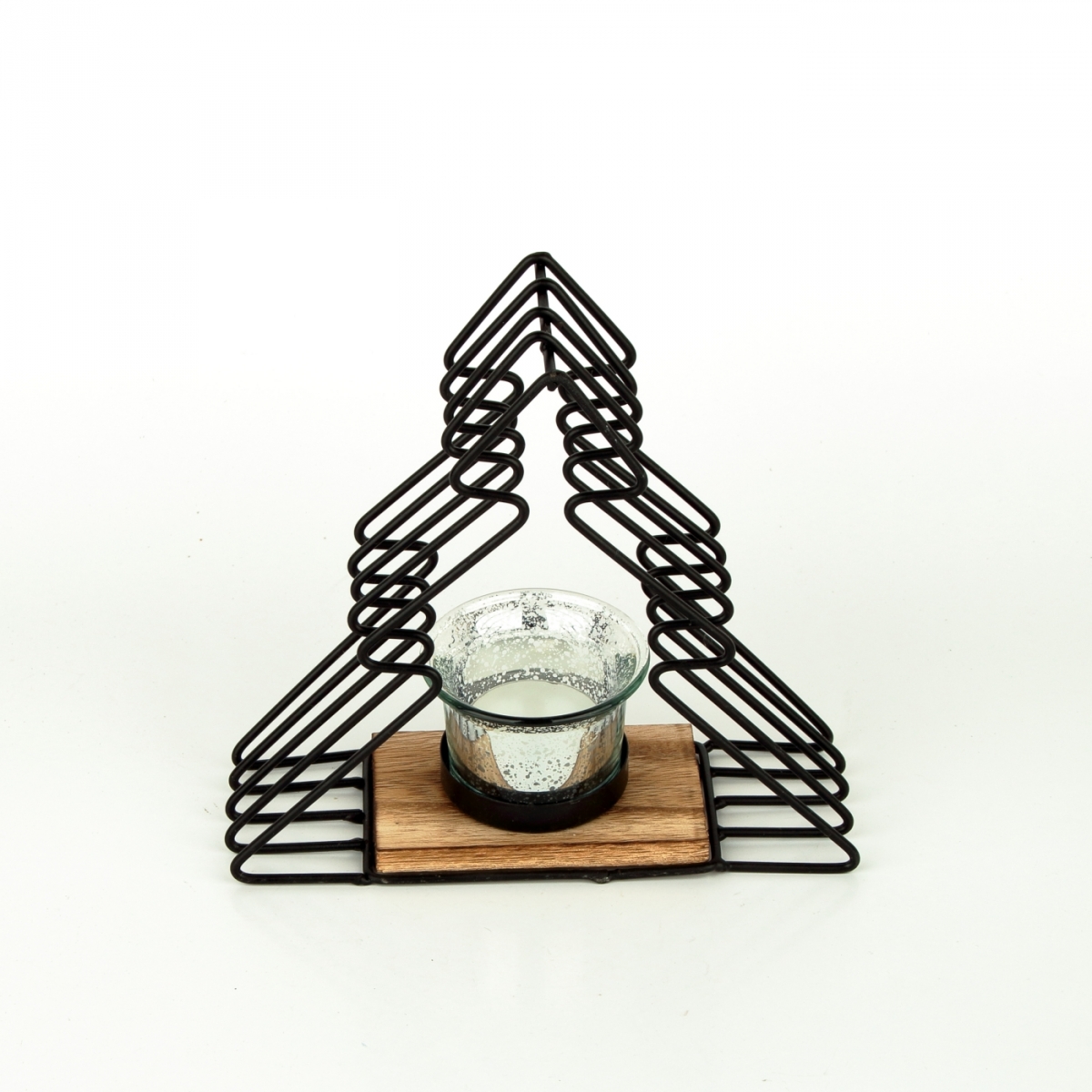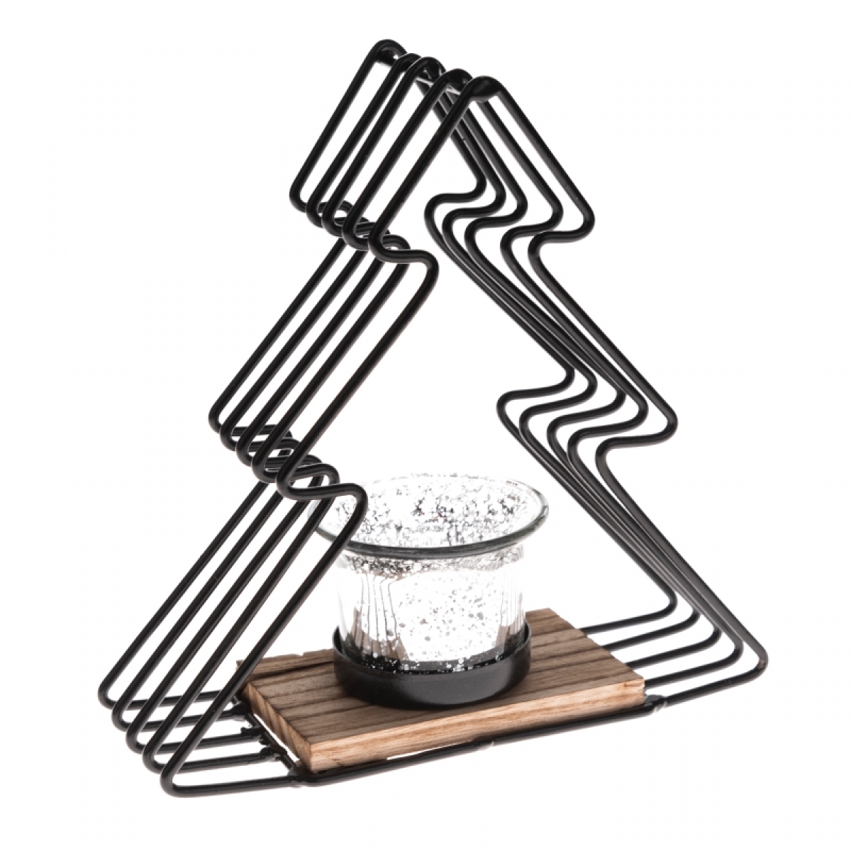 Vianočný svietnik z kovu a dreva v tvare stromčeka