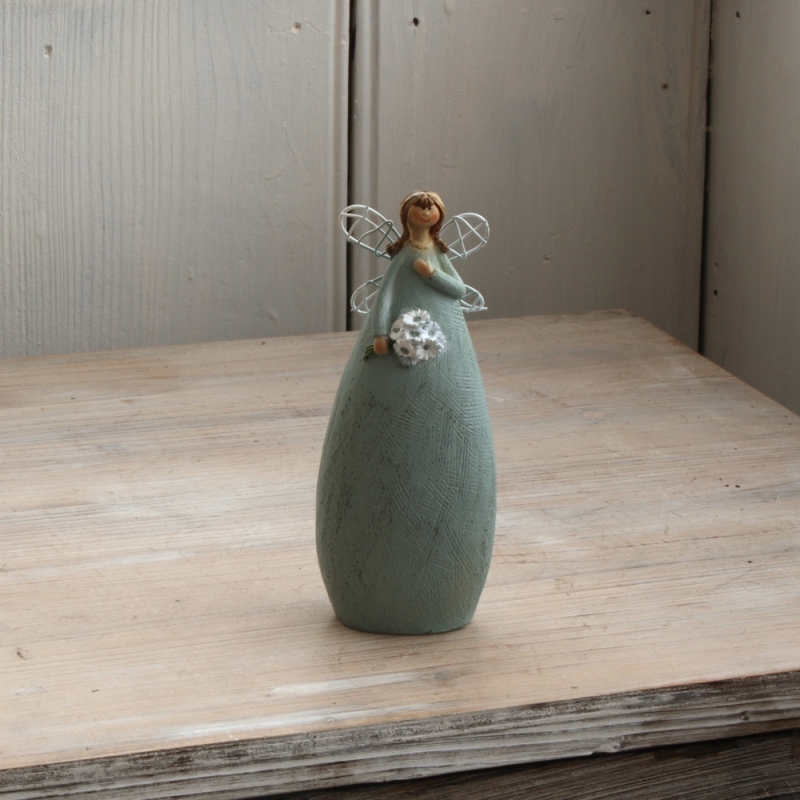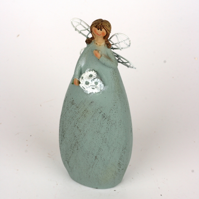 Víla v modrých šatách Ruka na srdci 15cm pre všetky romantické a nežné duše, ktoré sa rady obklopujú doplnky, ktoré zahrejú na duši.