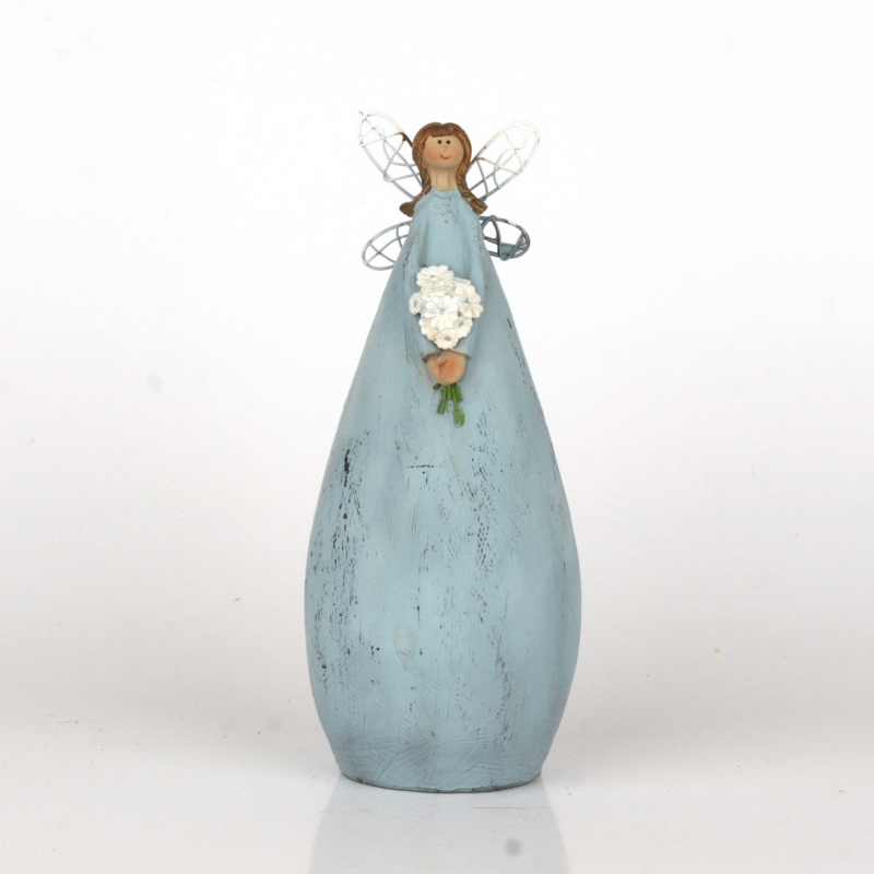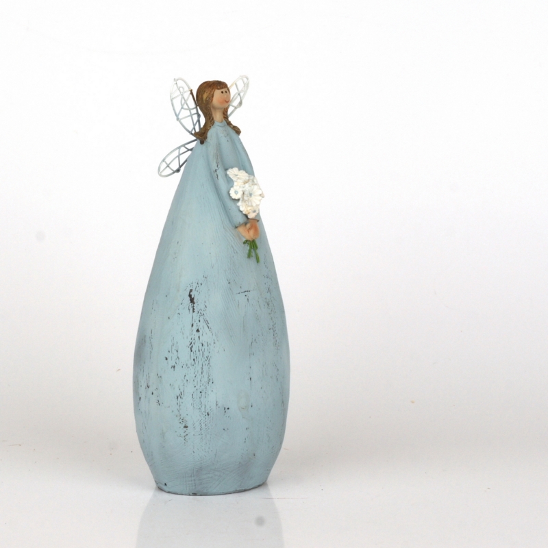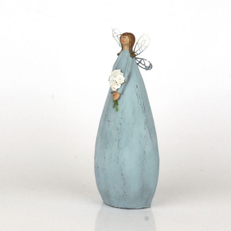 Víla v modrých šatách s kyticou 20cm pre všetky romantické a nežné duše, ktoré sa rady obklopujú doplnky, ktoré zahrejú na duši.