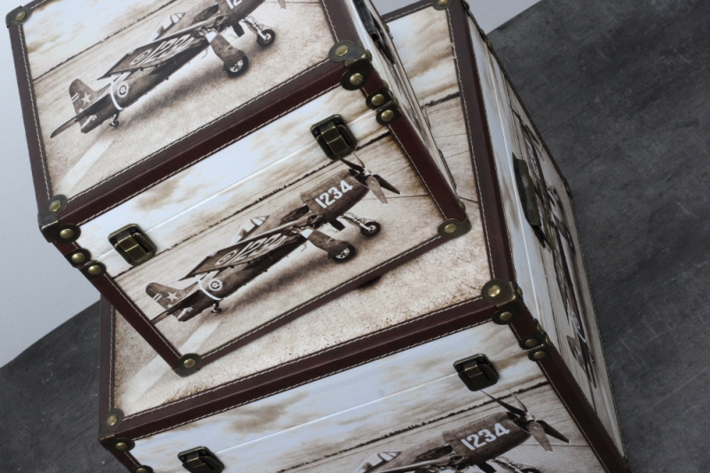 Vintage kufor lietadlo 27x27x21cm ako štýlová dekorácia a úložný priestor, ktorý sa vždy hodí.
