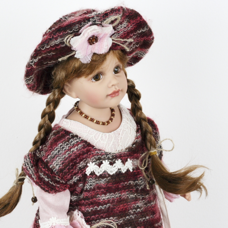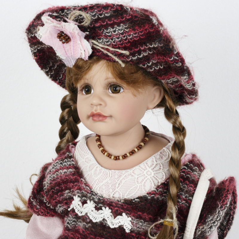 Šaty, svetrík, kabelka aj klobúk má parádne zladený, vlasy zapletené do vrkočov a tvár ako bábika. A to doslova.