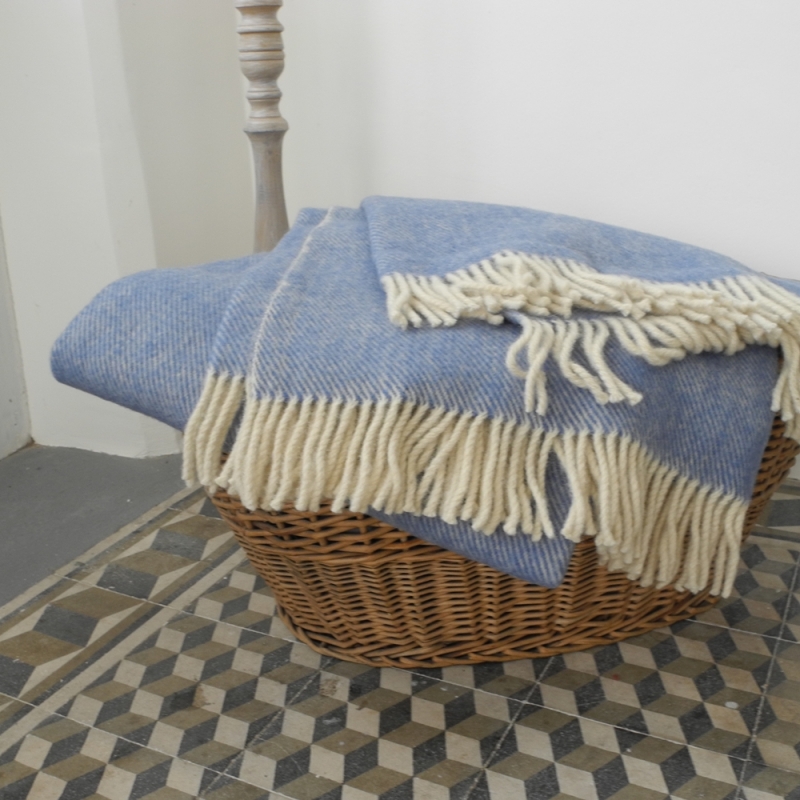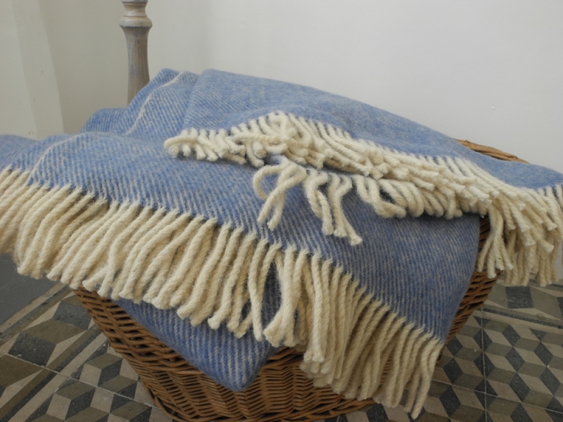 Vlnená prikrývka / deka modrá 135x200cm zahreje a krásne oživia pohovku.