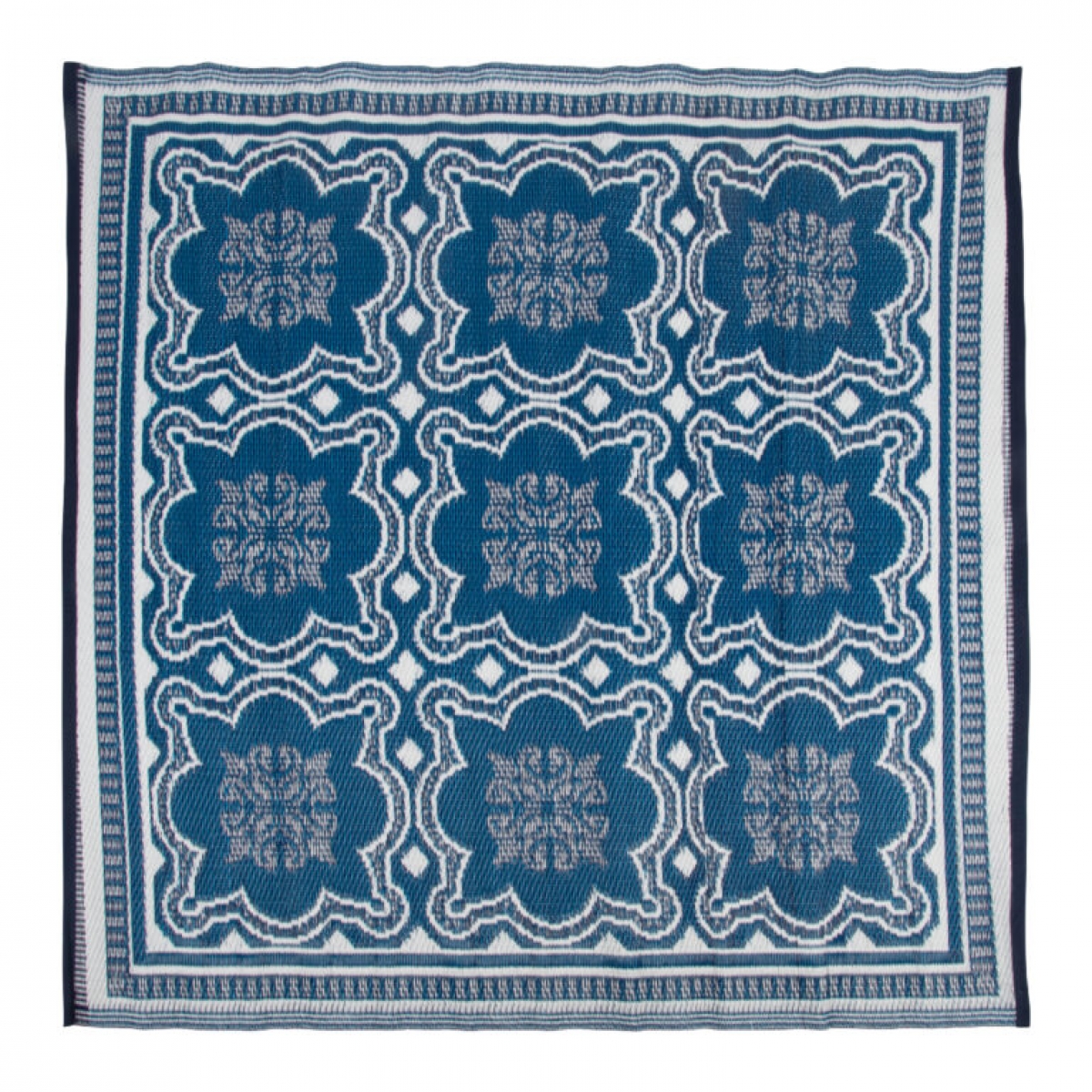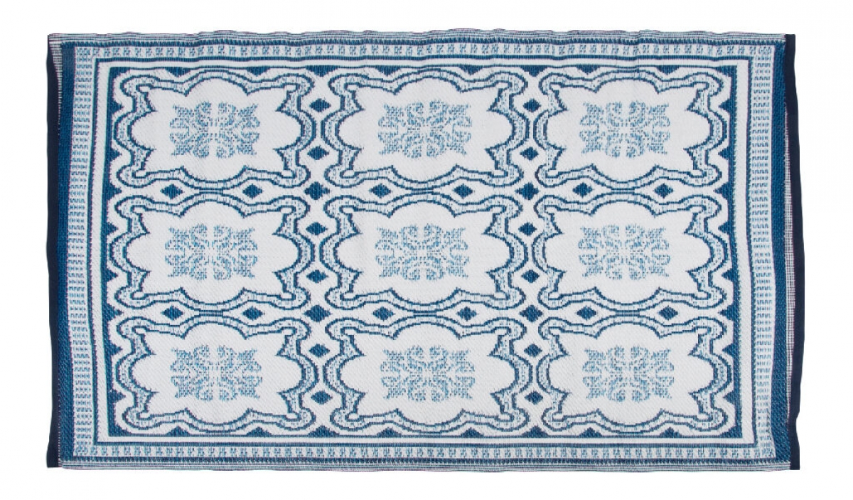 Vonkajší koberec štvorcového tvaru s modro-bielymi ornamentmi