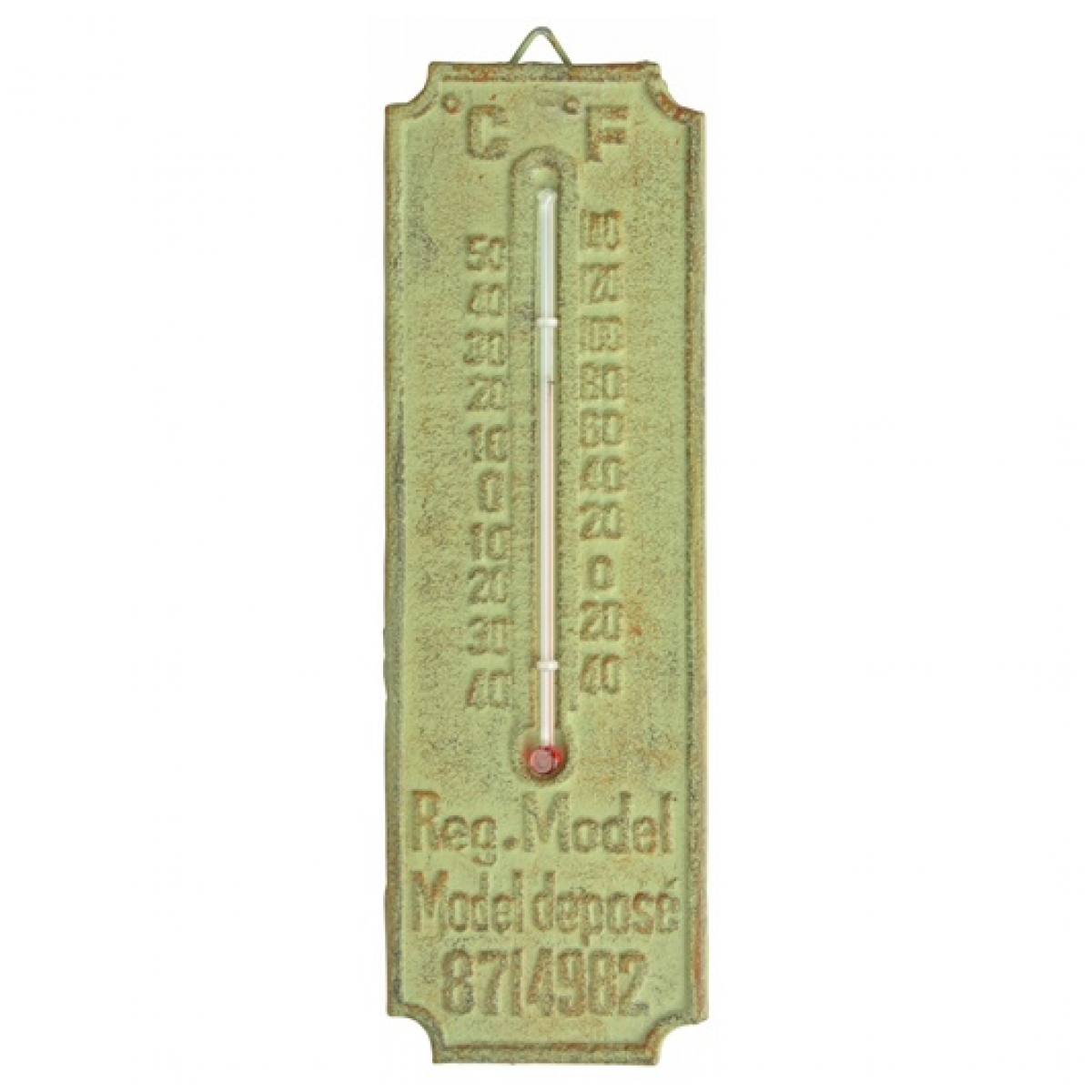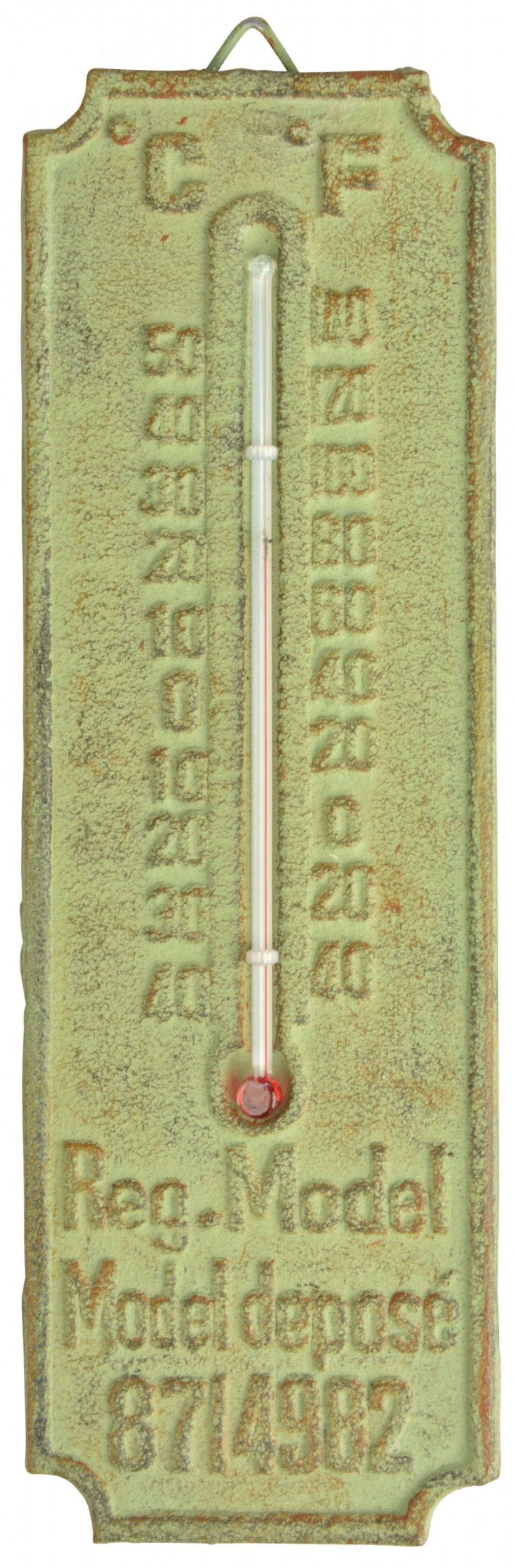 vonkajší teplomer sa zelenou patinou 20x6cm Vám vždy spoľahlivo prezradí vonkajšiu teplotu. Zaveste ho za okno, k dverám alebo napríklad k vonkajšiemu posedenie. Jednoducho tam, kde budete mať o teplote najlepší prehľad.
