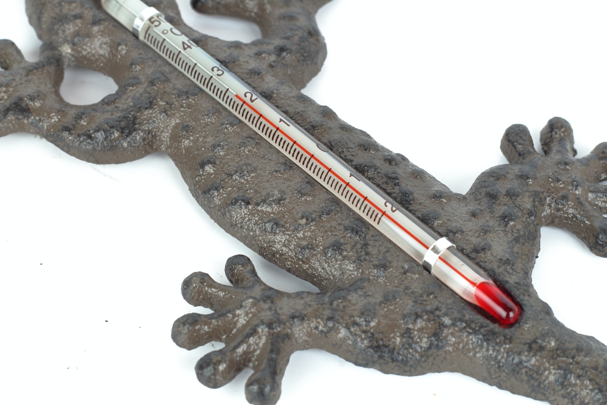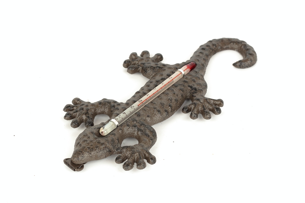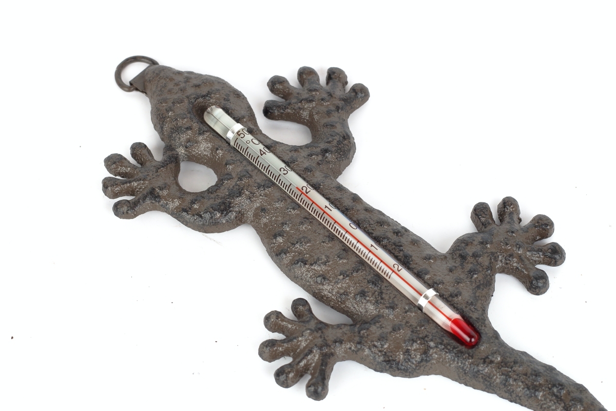 Teplomery sú nielen praktickými pomocníkmi, niektoré rozhodne poslúži aj ako krásna dekorácia za okno alebo na fasádu domu. Nie inak je tomu aj v prípade tejto štýlovej liatinové jašterice, ktorá slúži práve ako vonkajší teplomer!
