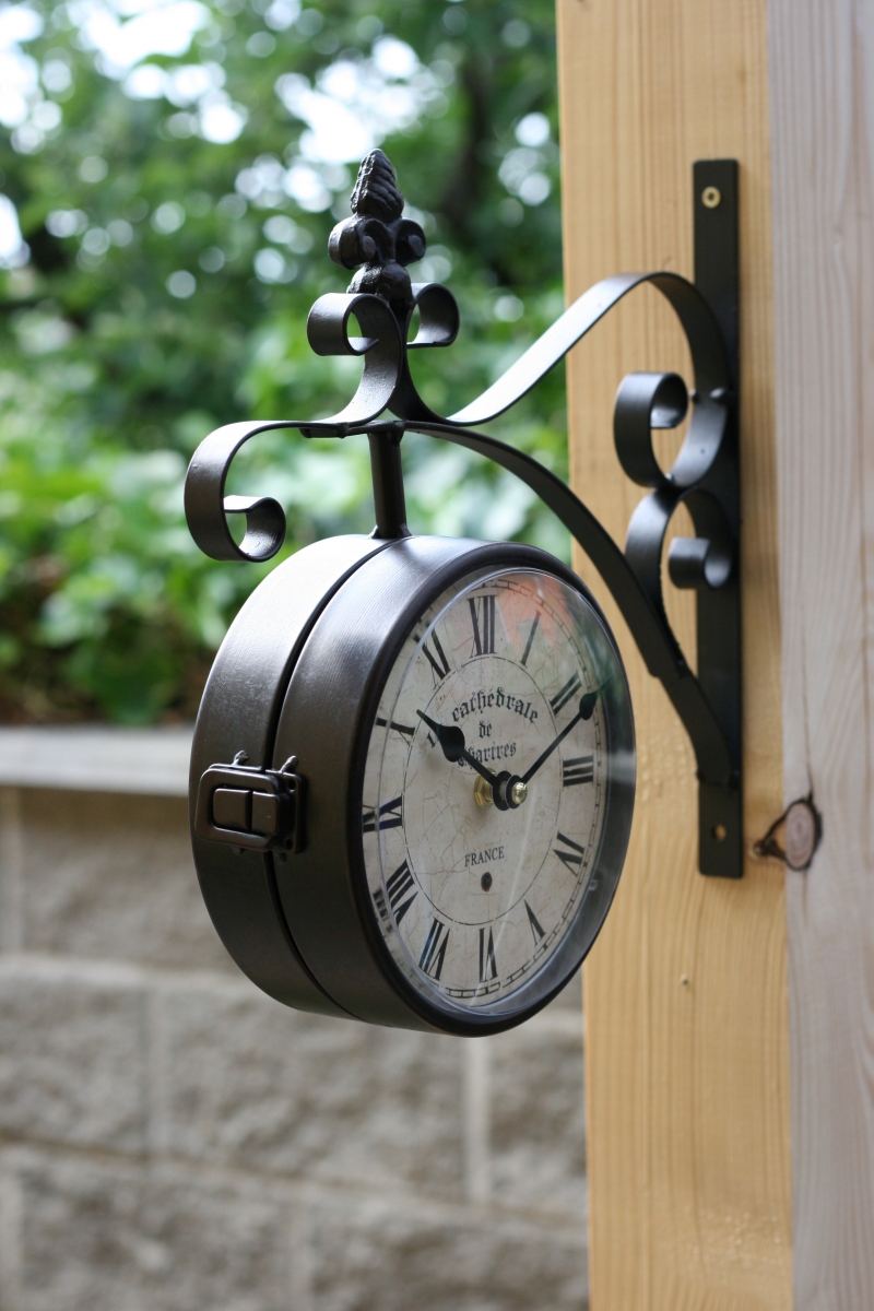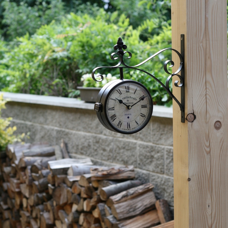 Vonkajšie hodiny s ciferníkom na oboch stranách sú určené pre umiestnenie napríklad pod pergolu na záhrade. Najlepšie vyniknú pripevnené na drevenom tráme či murovanom stĺpa.