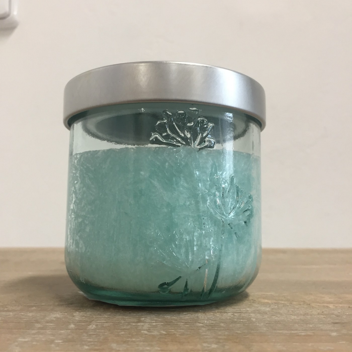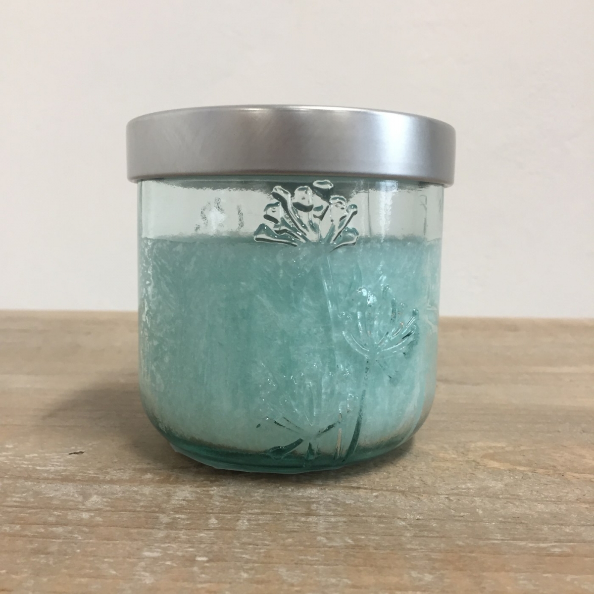 Vonná sviečka je ručne liata do dózičky z recyklovaného skla s motívom púpav, ktorá môže po vymytí slúžiť v domácnosti na uskladnenie napr. kávy, cukru, sušených byliniek, semienok do jogurtu a pod.