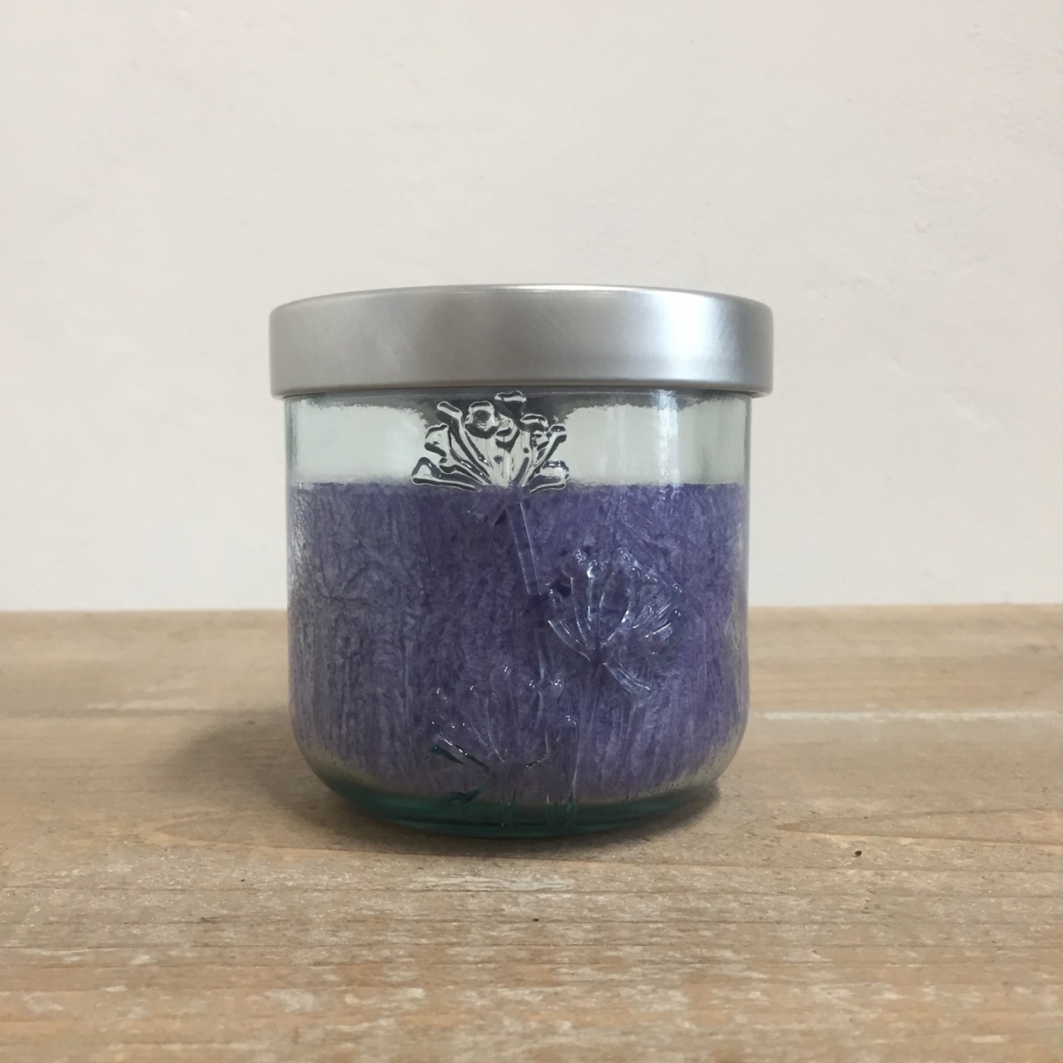 Vonná sviečka v pohári s púpavou - francúzska levandule