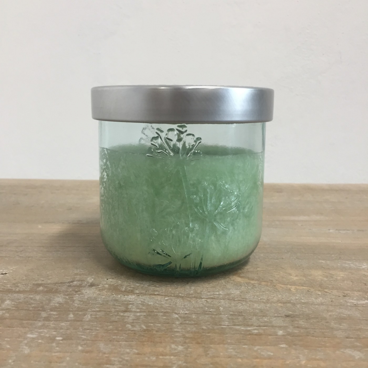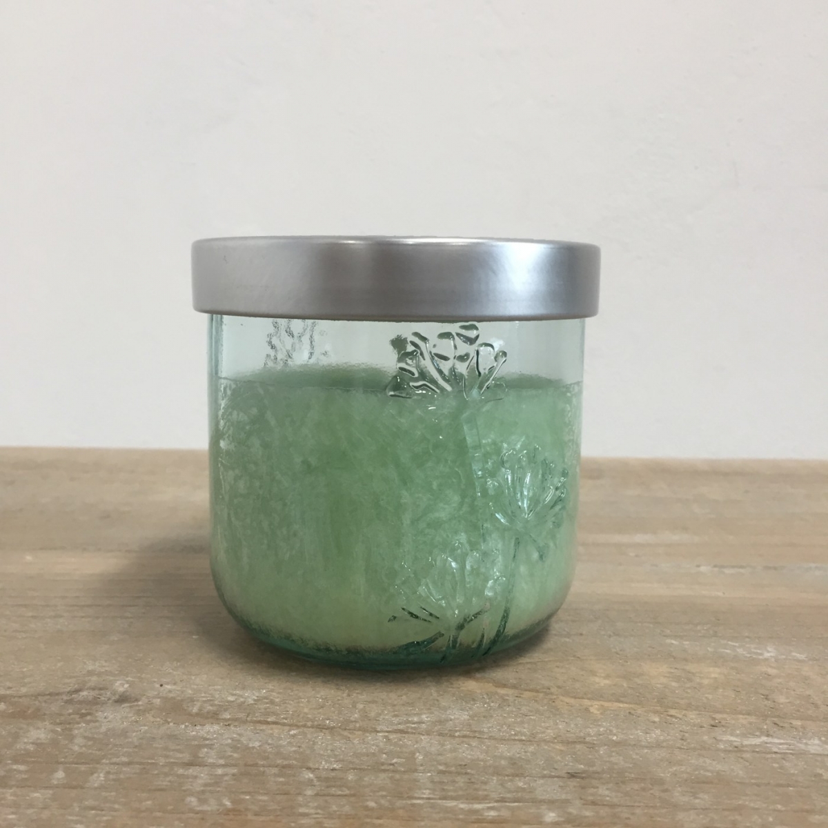 Dóza vonnej sviečky je z recyklovaného skla, má praktické viečko opatrené silikónovým tesnením, takže po vyhorení určite nájde ďalšie uplatnenie vo Vašej domácnosti.