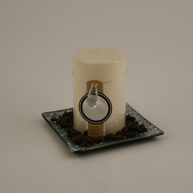 Vonná viečka Velvet Cream má výšku 10 cm a priemer tejto ozdobné sviečky je 7 cm . Ako napovedá názov , jej vôňa vám bude pripomínať vôňu lahodnej kávy .