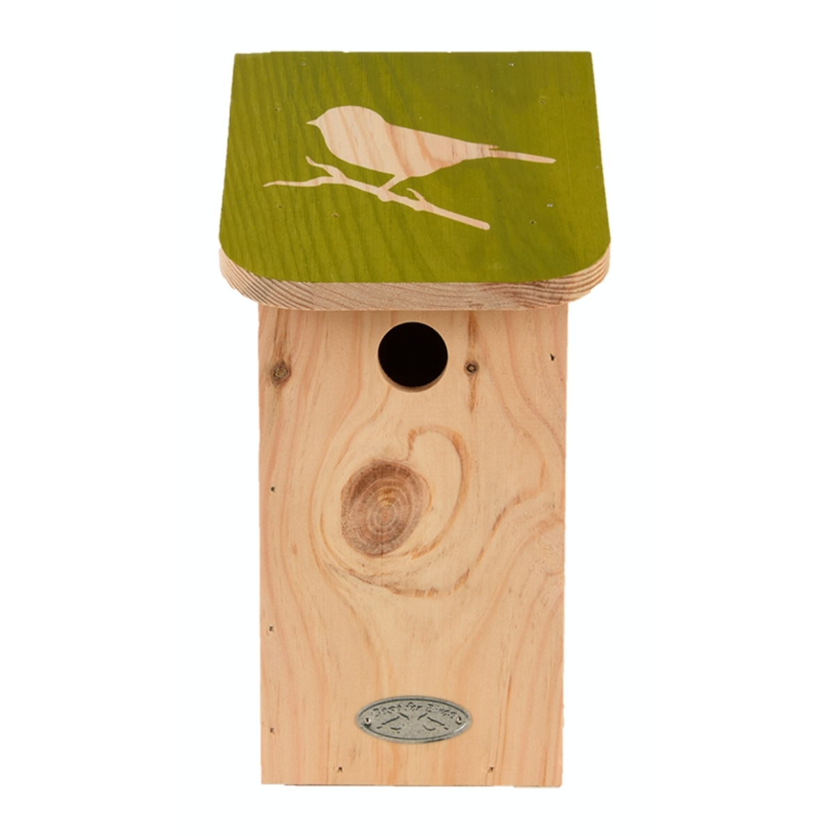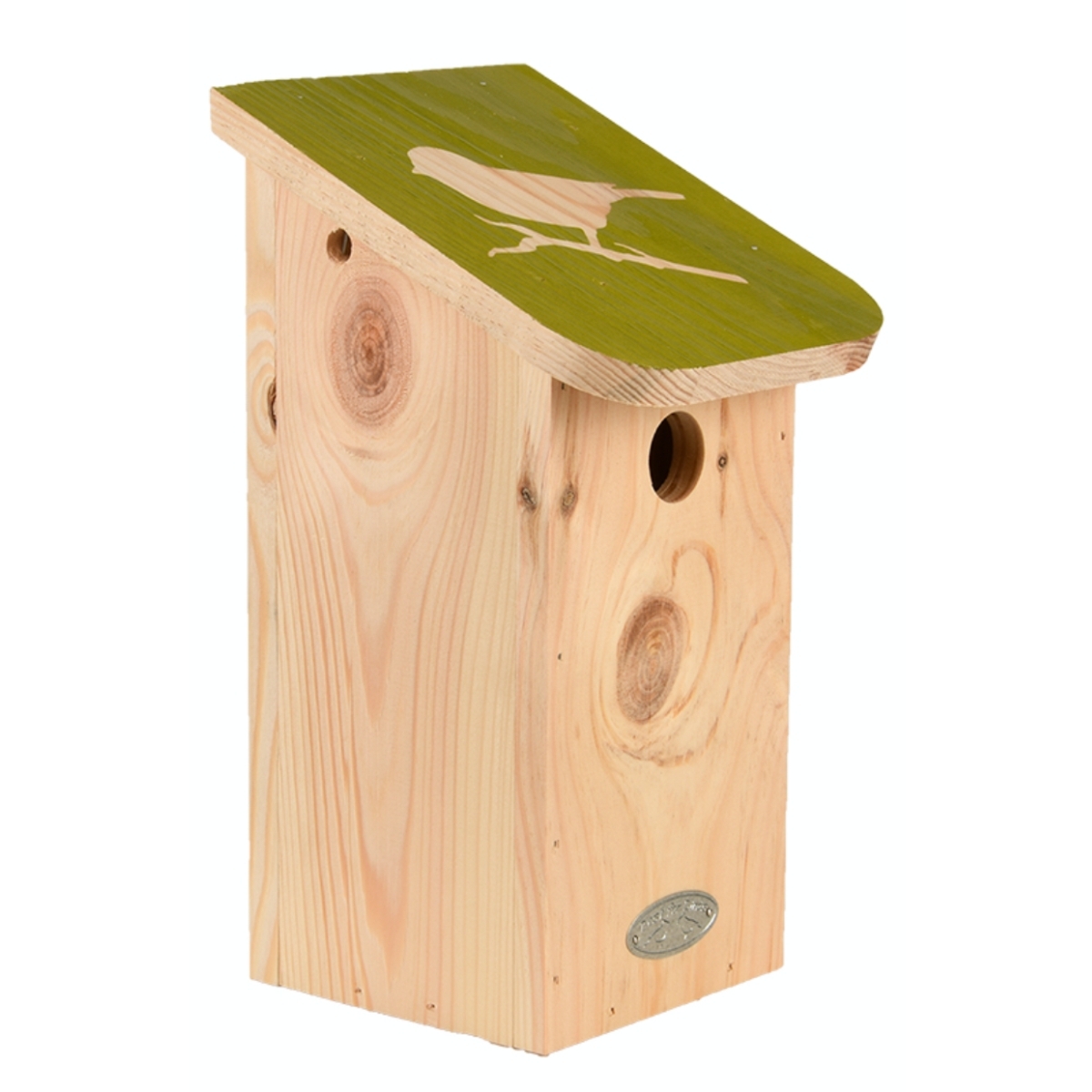 Vtáčia búdka s veselou farebnou strechou a diapozitívnou siluetou je určená pre sýkoru modrinku. Dobré miesto na hniezdenie ponúka nielen sýkorka modrinka, ale aj sýkorka chocholatá, sýkorka bahenná, sýkorka vŕbová a uhoľná. V ťažkých zimných podmienkach ponúka búdka úkryt a ochranu.