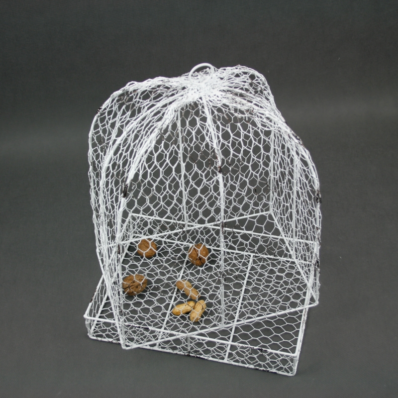 Vtáčia klietka je vyrobená z drôteného pletiva. Klietka je zvláštne tým, že nemá dvierka - skladá sa z dvoch častí (dno, poklop).