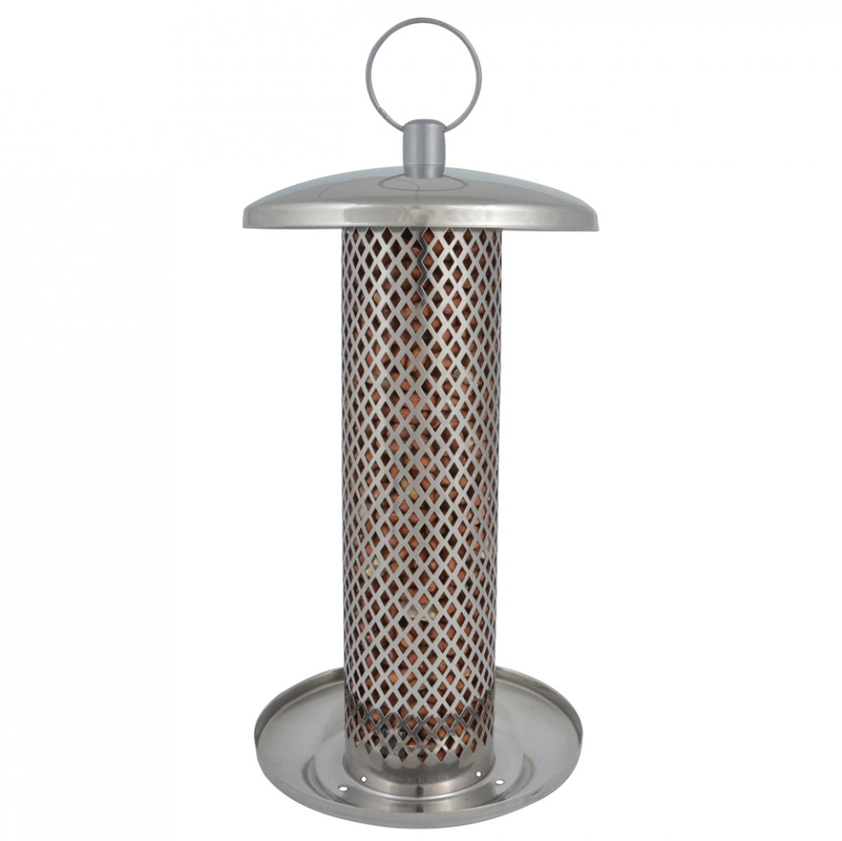 Miska kŕmidlá, ktorá zabraňuje padaniu škrupín a zvyškov krmiva na zem je opatrená malými otvormi pre odtekanie dažďovej vody. Odnímateľná strieška kŕmidla umožňuje ľahké dávkovanie orechov.