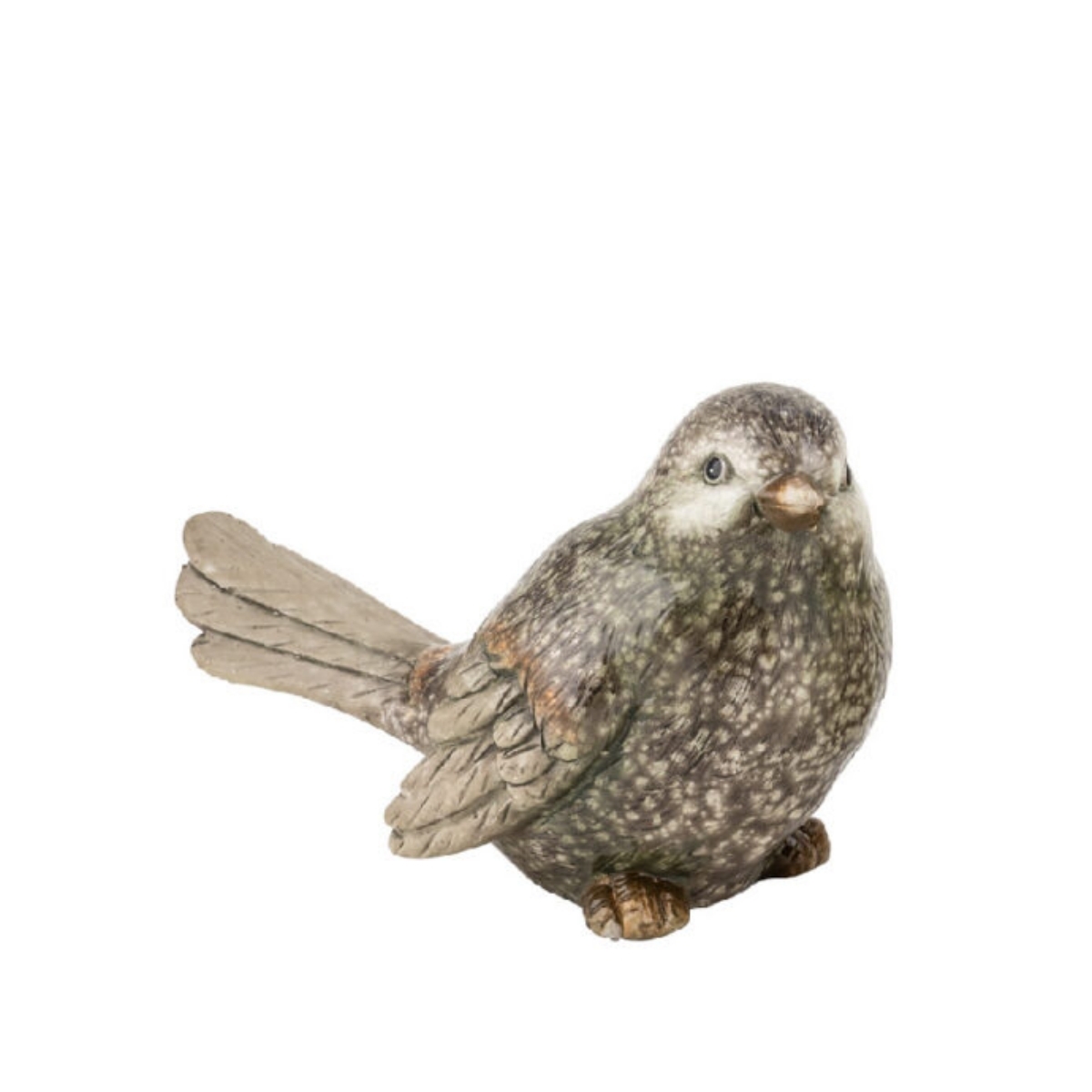 Vtáčik je vyrobený z keramiky a pýši sa veľmi prepracovanými detailmi, takže pôsobí ako by práve priletel. Trojrozmerná kresba peria je doplnená aj farebne, kombináciou hnedej, okrovej, krémovej a zelenej glazúry.