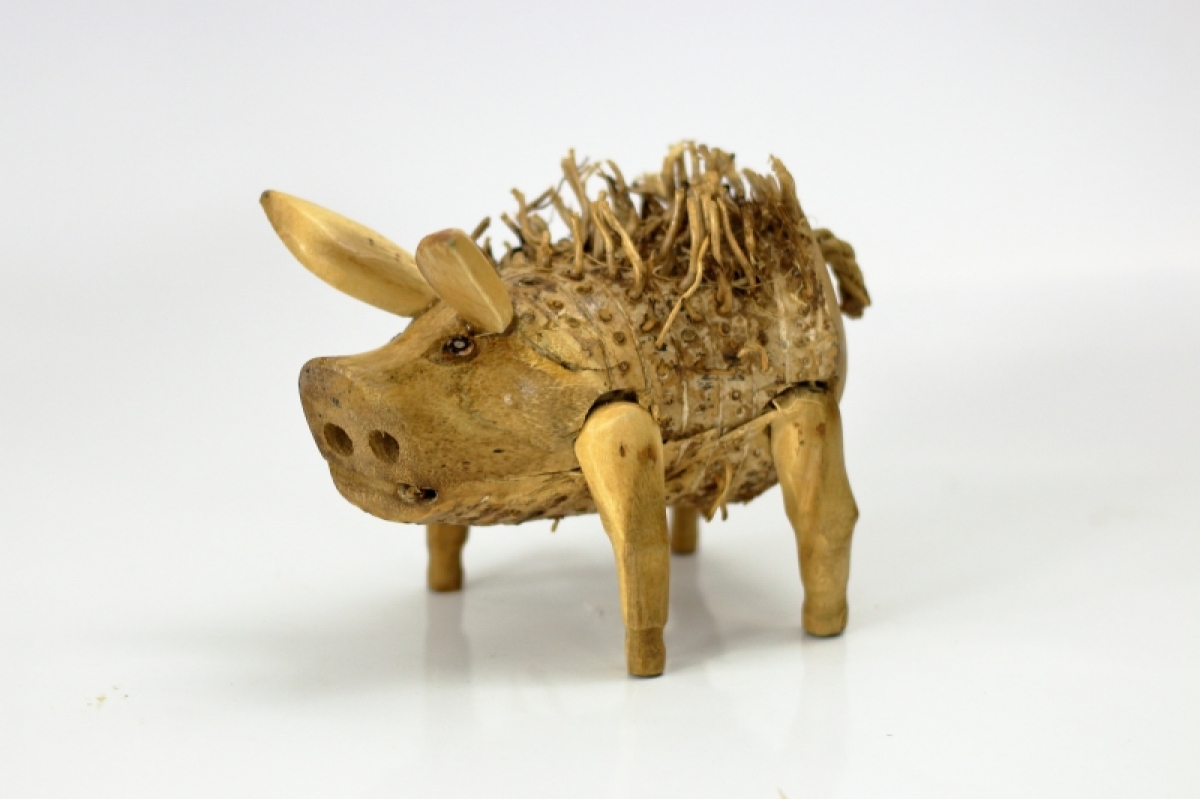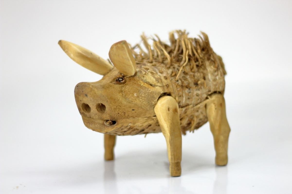 Menšie vyrezávané drevené sochy môžeme kúpiť v stvárnení napr. Prasiatka. Tú potom môžeme umiestniť napríklad aj v interiéri.