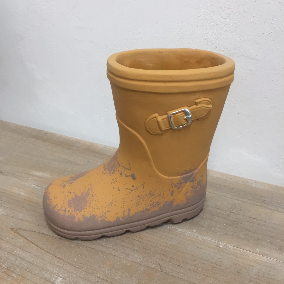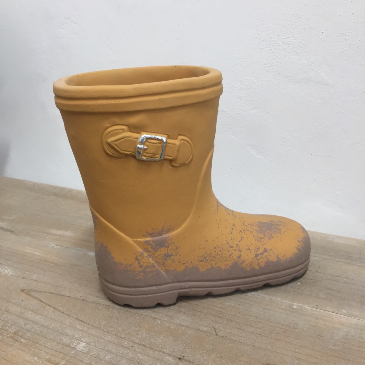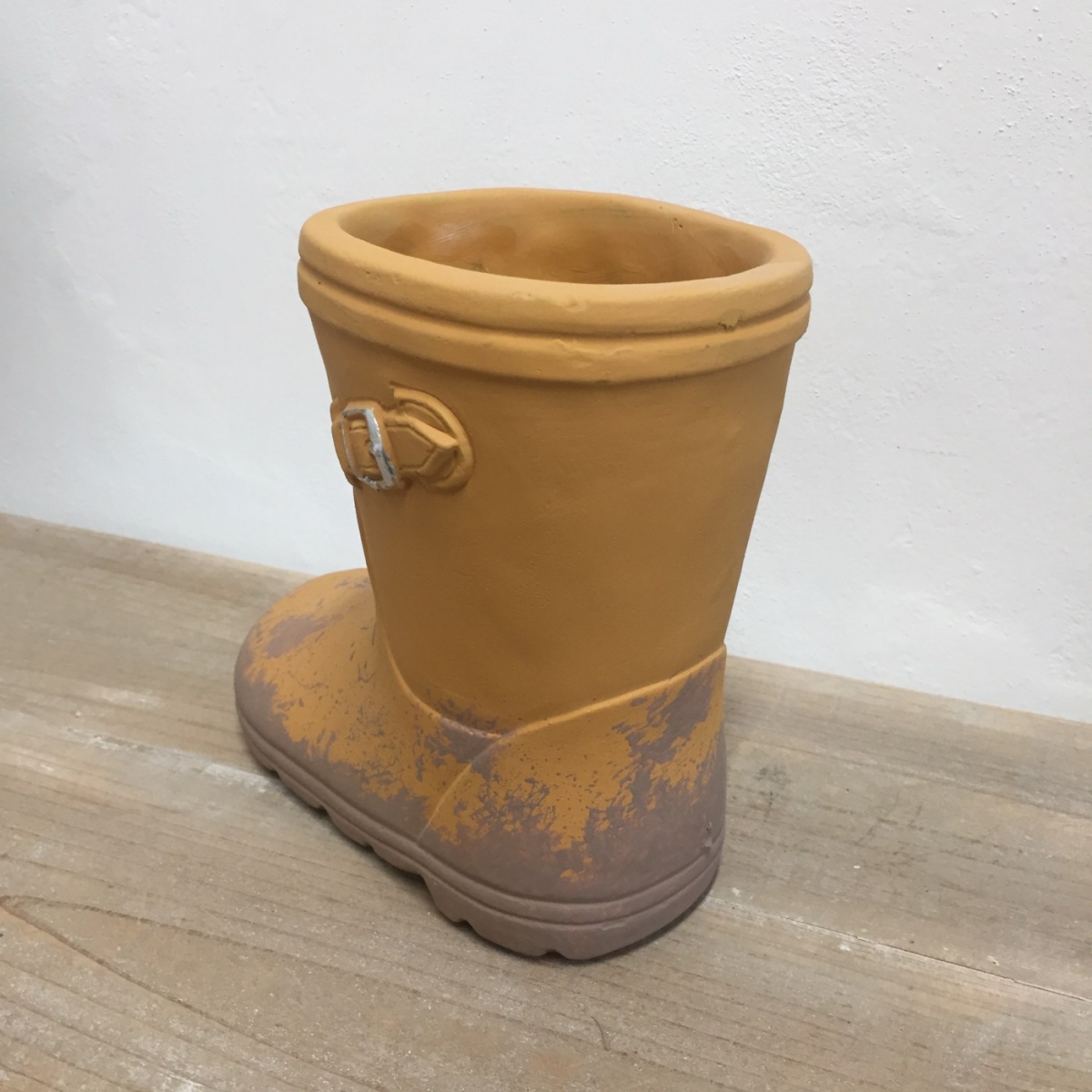 Záhradná dekorácia, určená najmä na vonkajšie použitie, v podobe žltej čižmy, vtipne osvieži každú záhradu, skalku, kvetinový záhon, či terasu. Tento hravý prvok určite zaujme každého, kto sa u vás vyskytne.