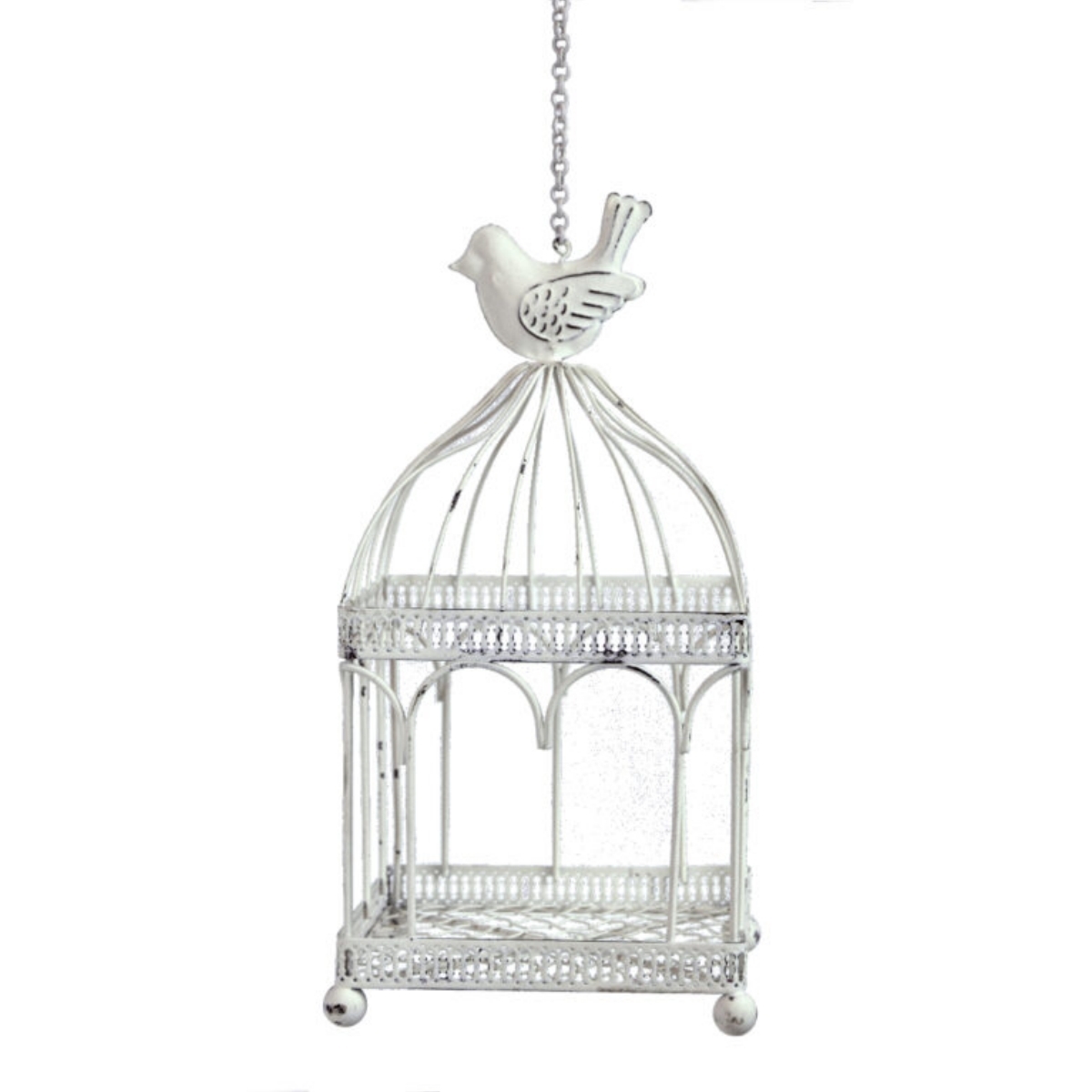 Pokiaľ hľadáte zaujímavú dekoráciu do záhrady alebo romantický doplnok svadobného aranžmánu, tak táto klietka zdobená roztomilým vtáčikom v bielom prevedení s patinou je pre tento účel ako stvorená.