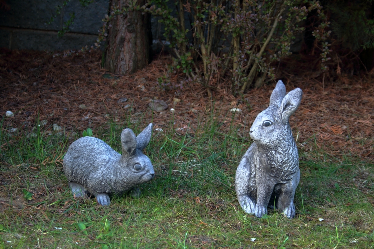 Záhradná dekorácia z betónu v podobe šedého zajačika
