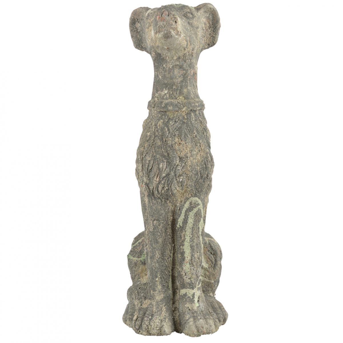 Terakota, z ktorej je záhradná socha psa vyrobená, je veľmi odolným materiálom, ktorému rozhodne nevadí rozmary počasia. Navyše je povrch psa opatrený patinou, ktorá mu prepožičiava zvetraný vzhľad s machmi a lišajníkmi.