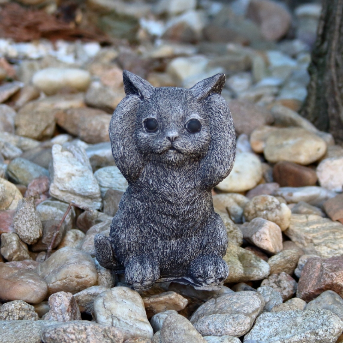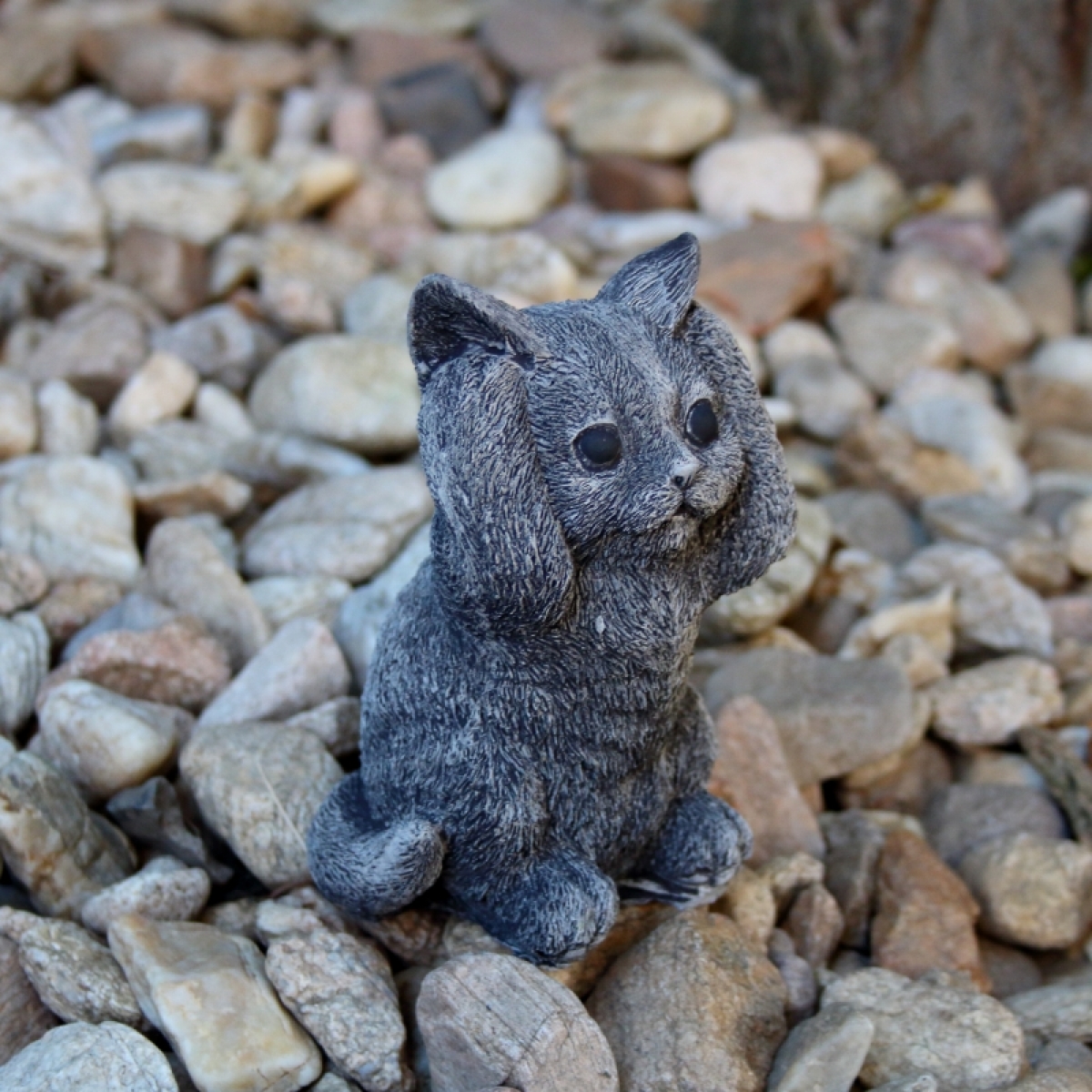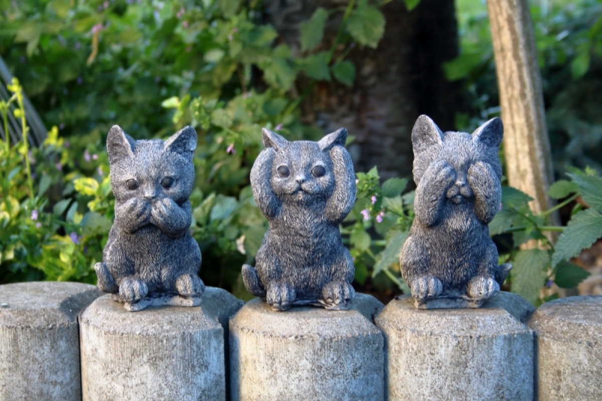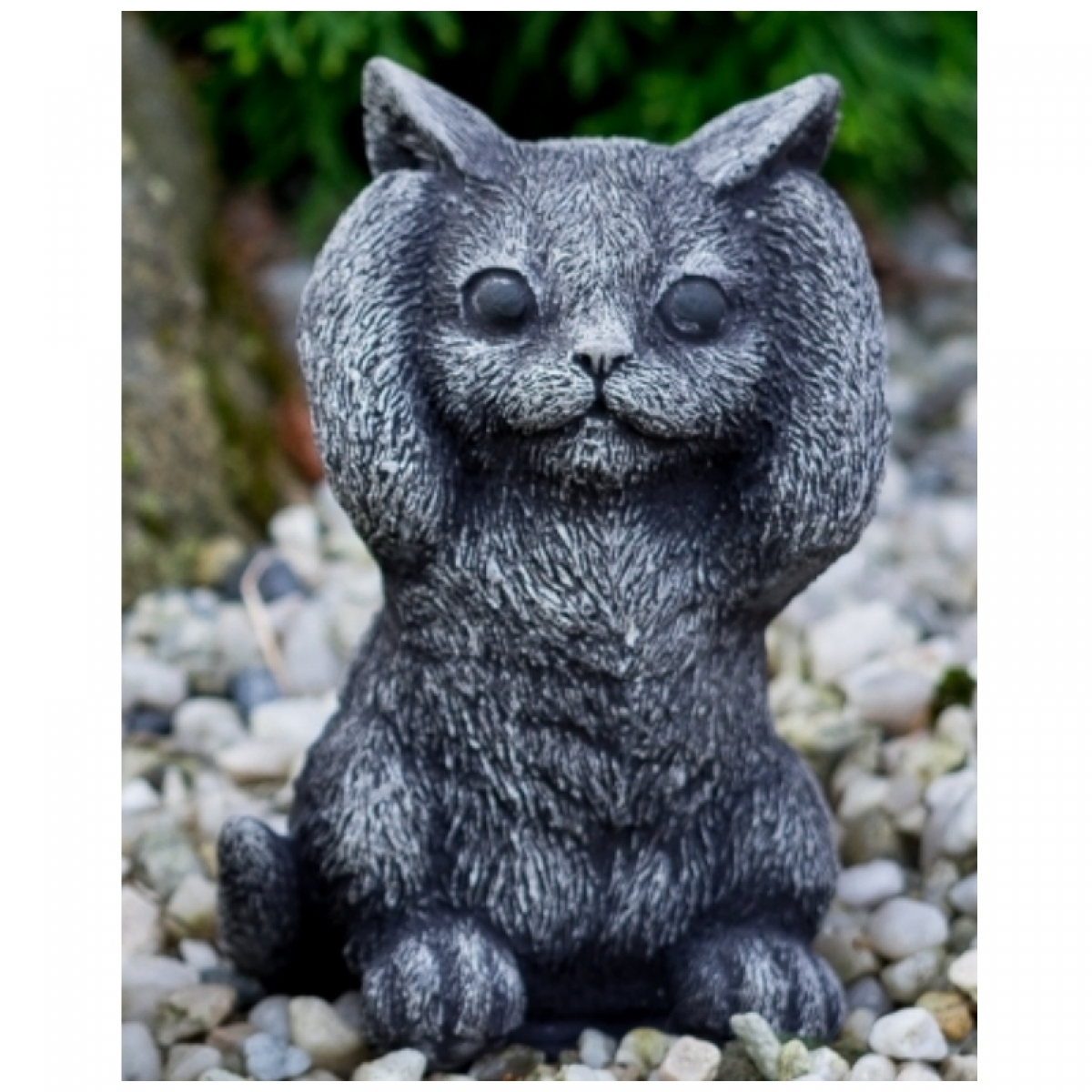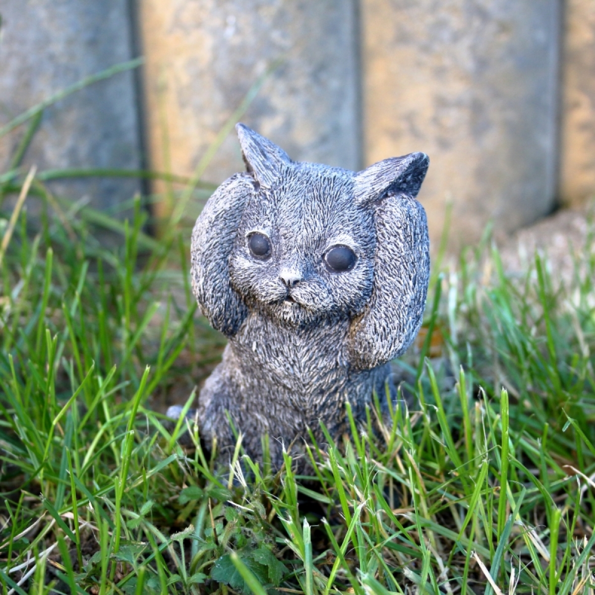 Záhradná soška mačiatka sa zakrytými ušami