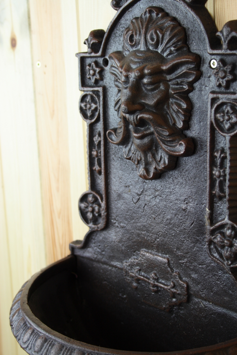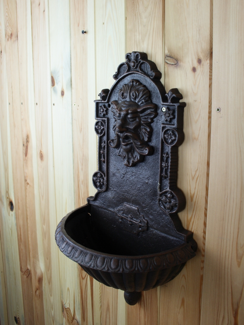 Záhradná výlevka liatinová v hnedej farbe s patinou.