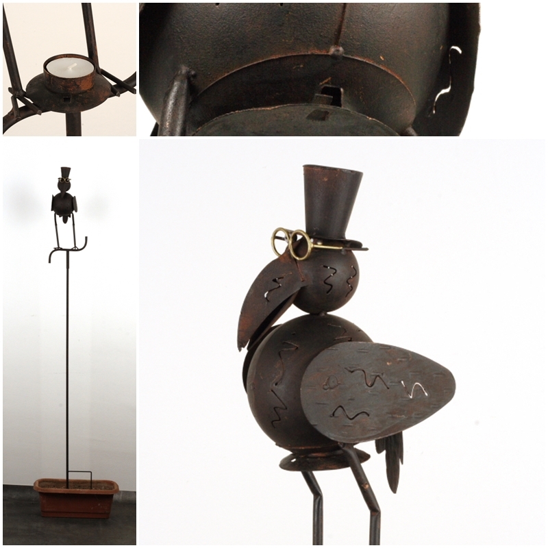 Kovový zápich s vtáčikom neslúži len ako krásna dekorácia, ale aj malá záhradné lampáš.