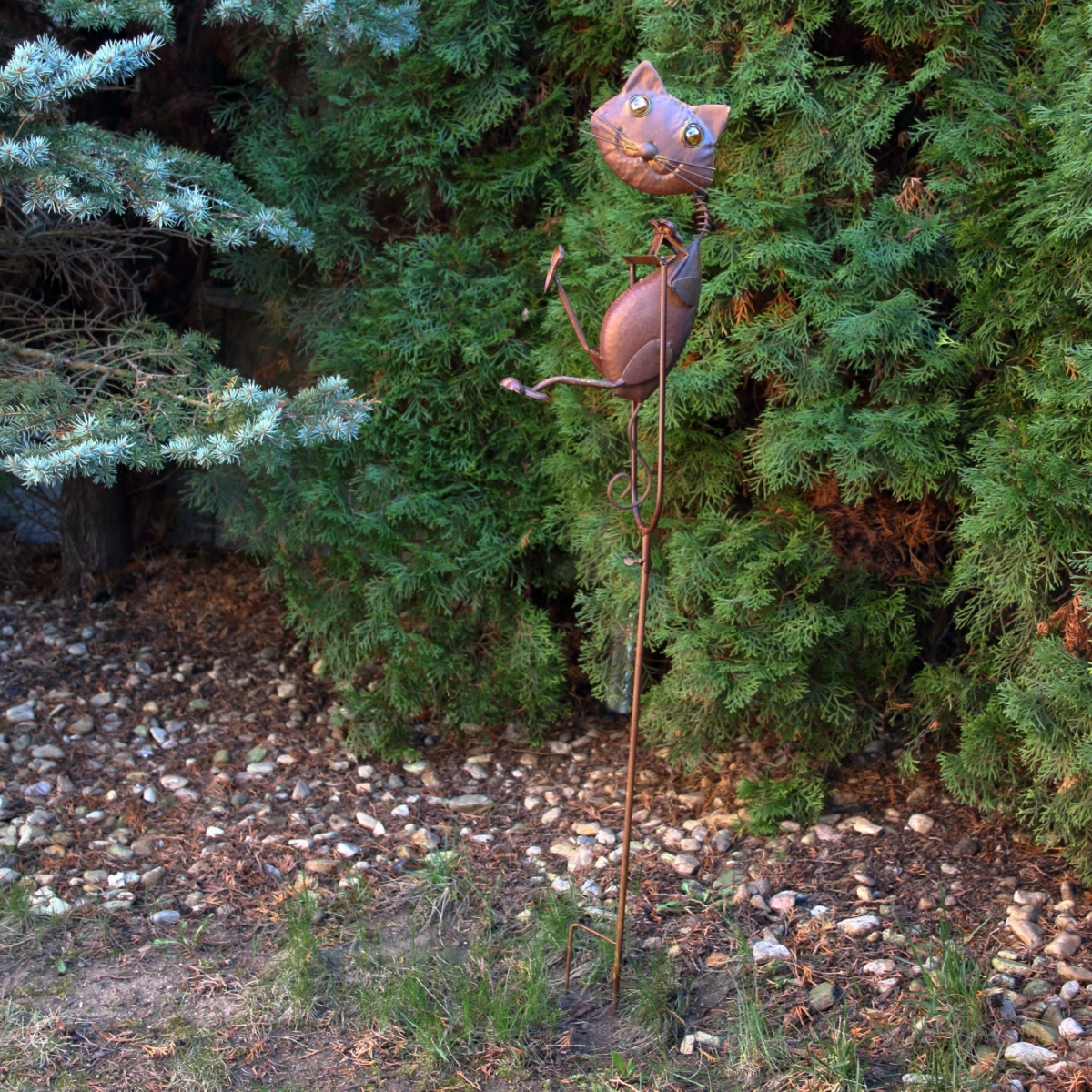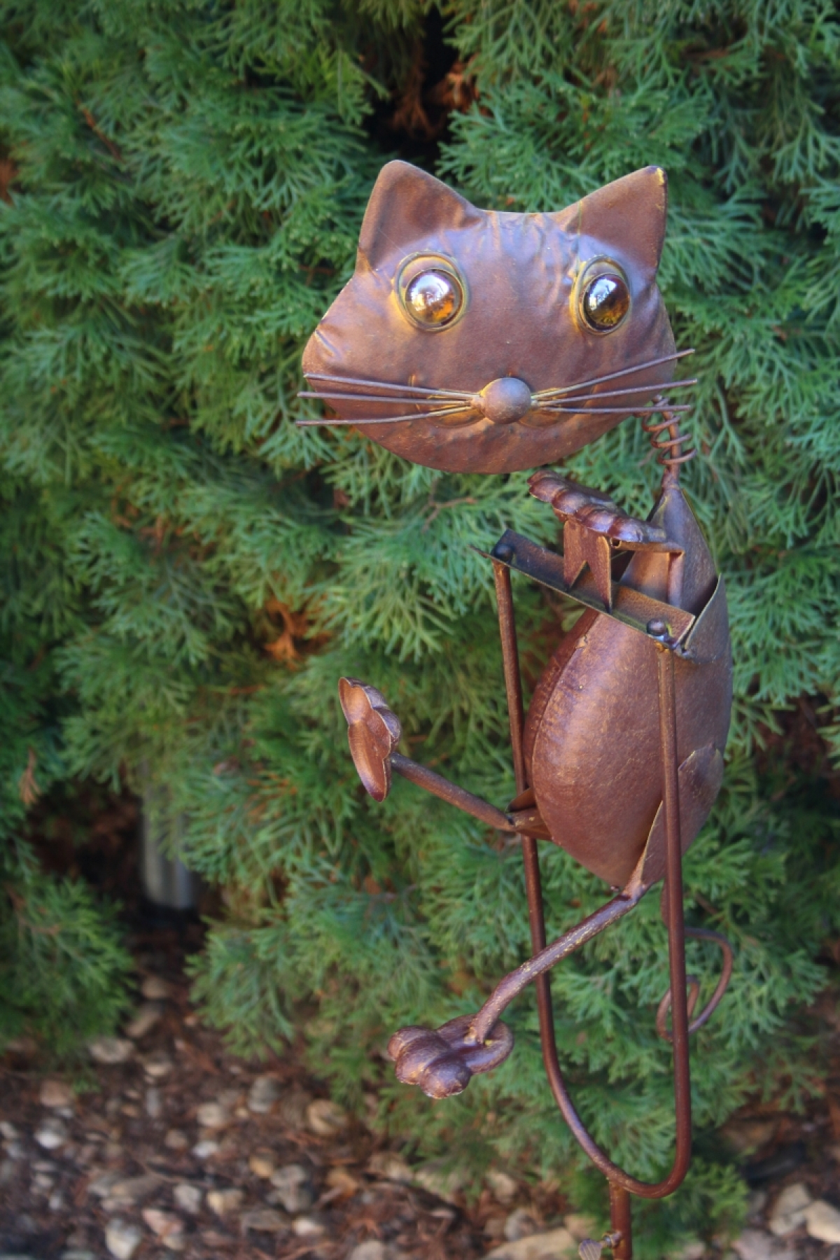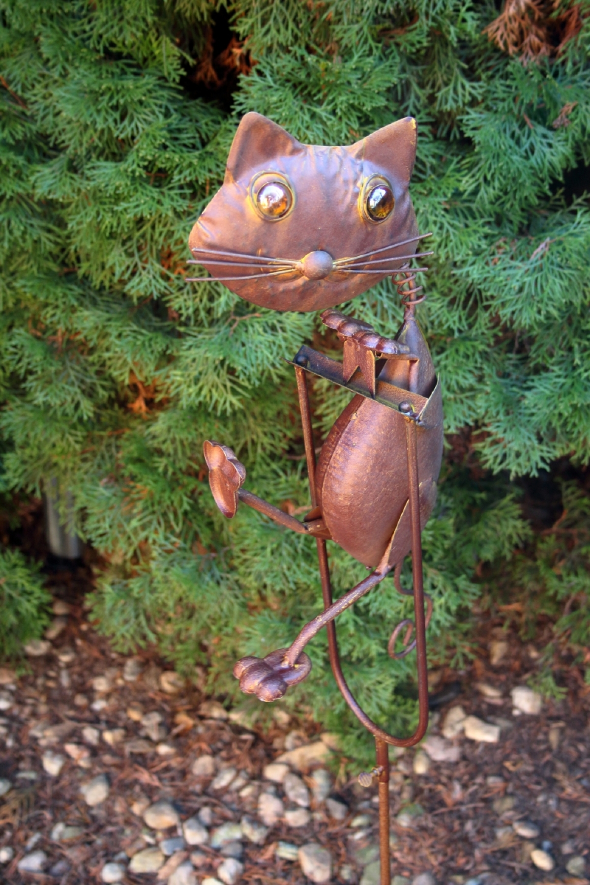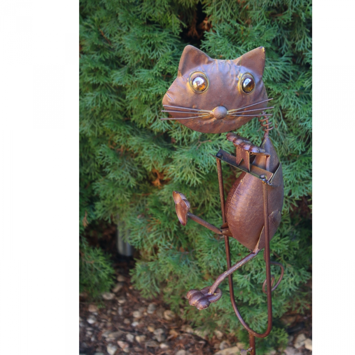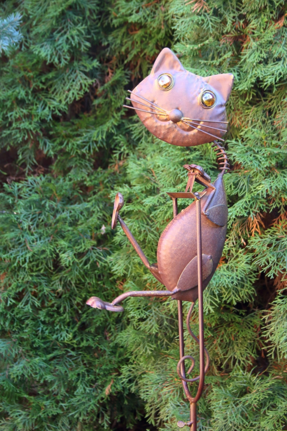 Záhradné dekorácie kovová mačka sa zápichom do trávnika.