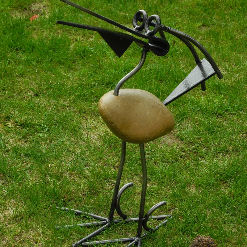 Telo vtáčika tvorí veľký kameň a nohy, hlava a zobák sú kované. Verte, že táto dekorácie si získa okamžitú pozornosť v akomkoľvek prostredí.